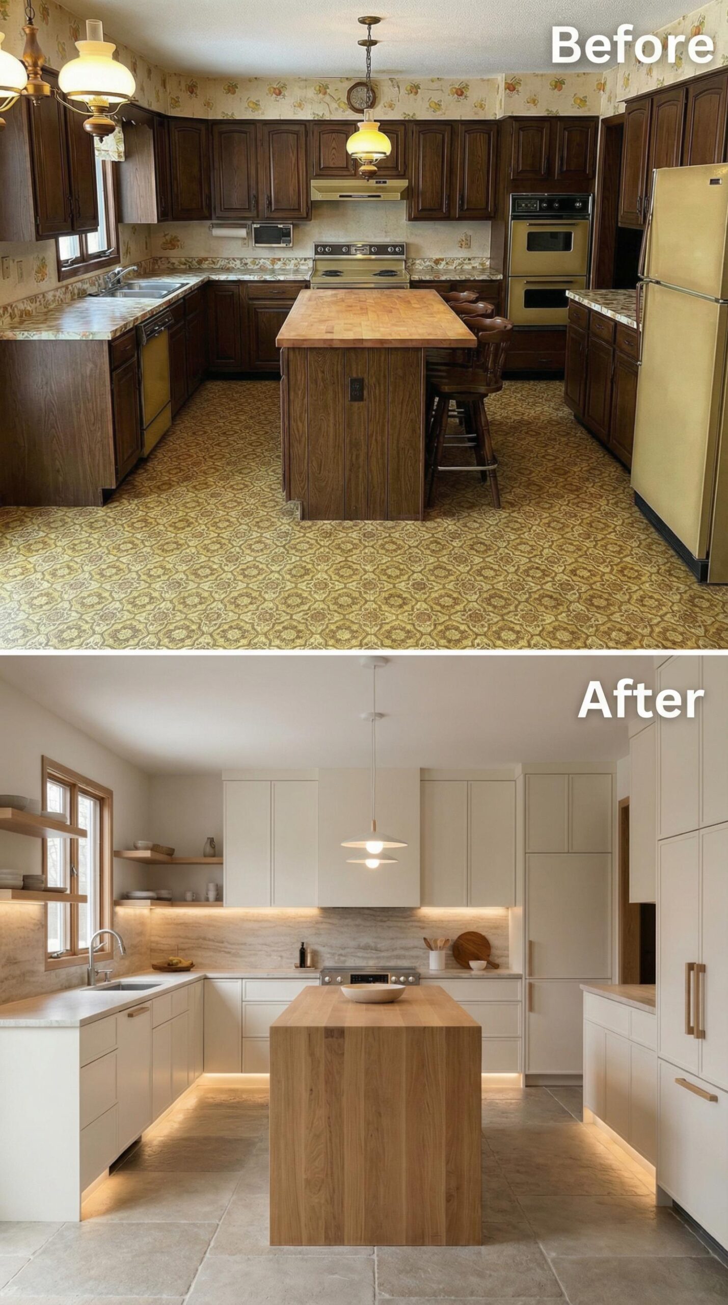 When planning a white kitchen renovation, I didn’t want just one safe idea. I wanted to see how the same space could transform across many different styles, moods, and levels of warmth. So instead of guessing, I asked AI to redesign this kitchen again and again. The result is a before and after collection of white kitchen concepts ranging from rustic and boho to gothic and European, all showing what’s possible without changing the layout.