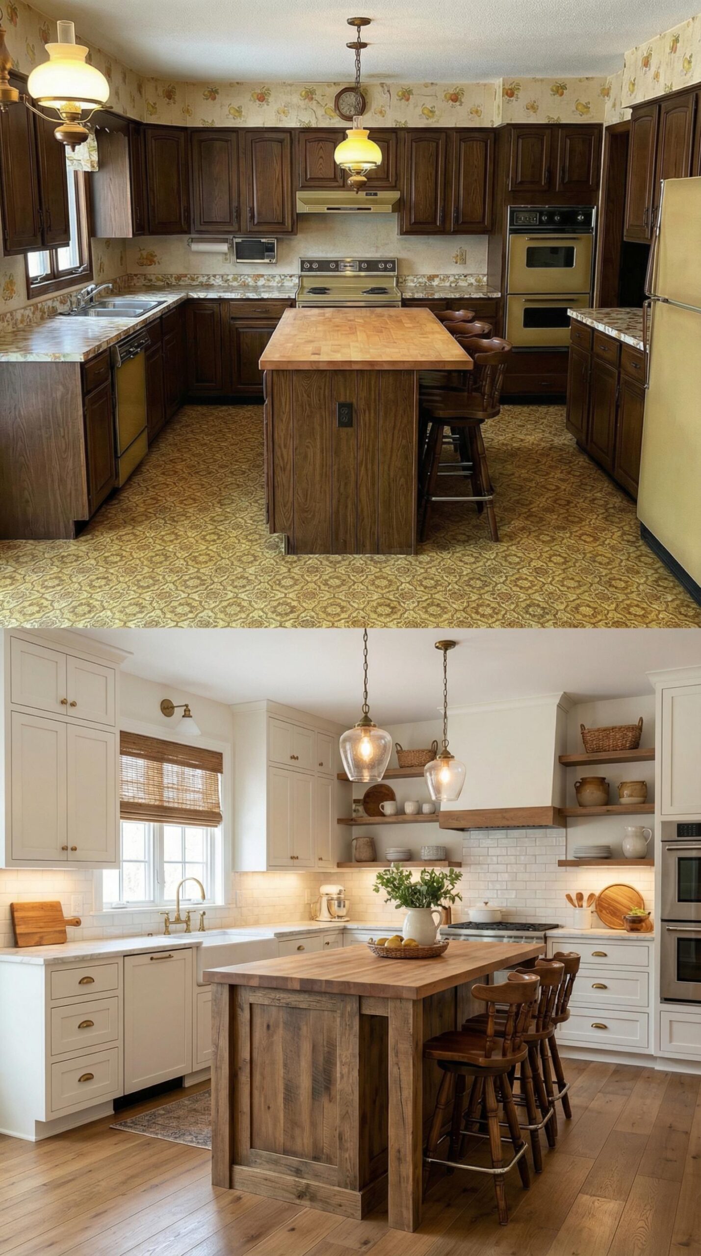 From Dated Dark Wood to Fresh Farmhouse Sophistication