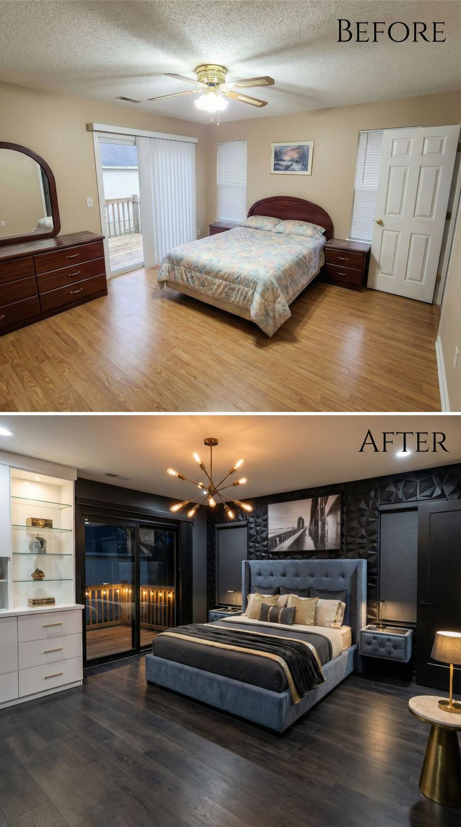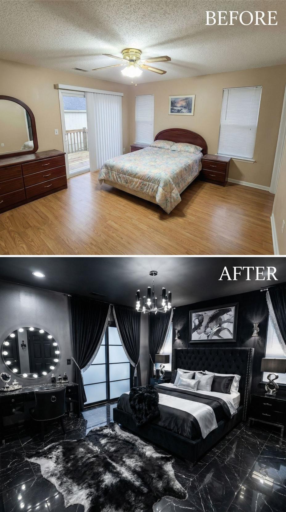 From Builder Grade Bedroom to Luxurious Black Contemporary Retreat