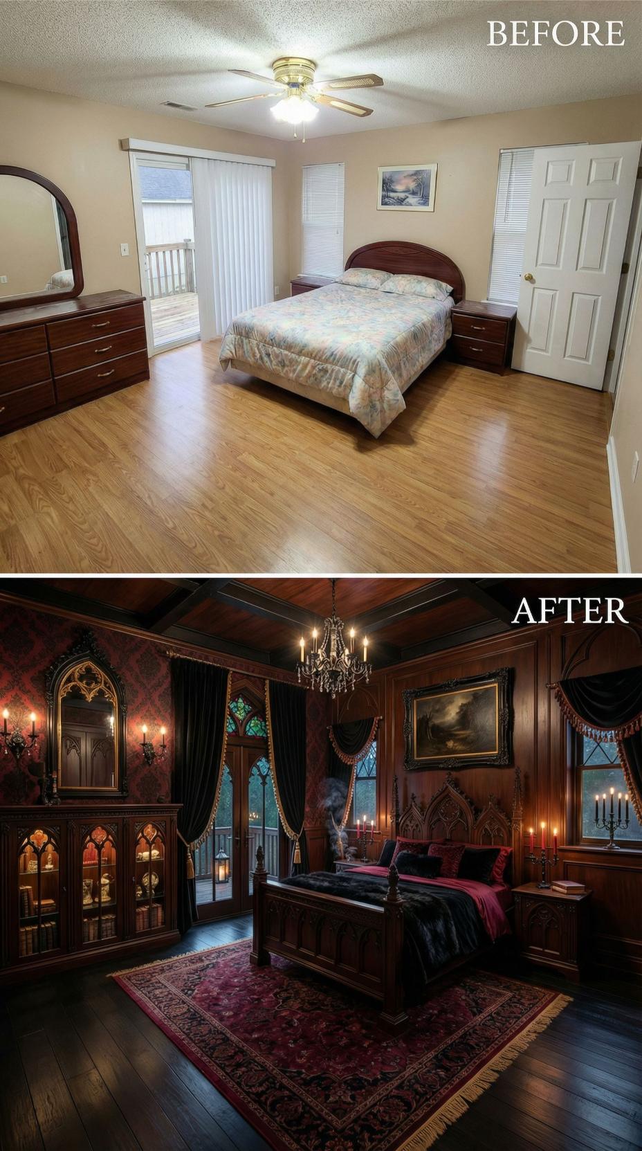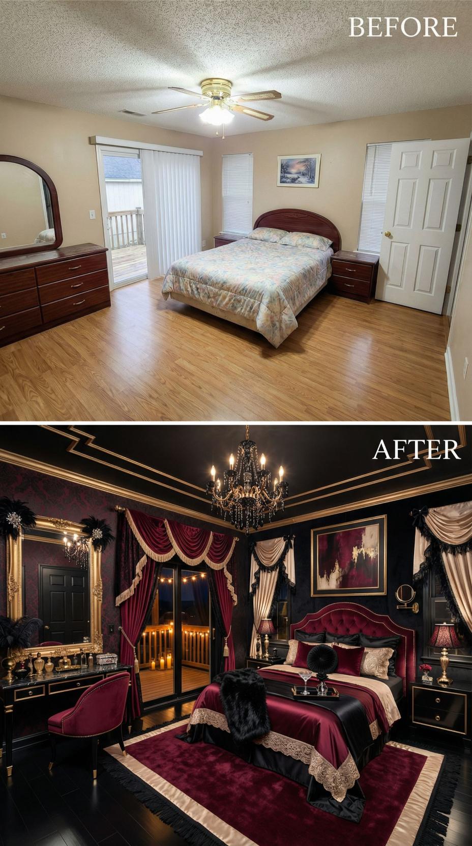 From Builder Grade Bedroom to Gothic Glamour Sanctuary