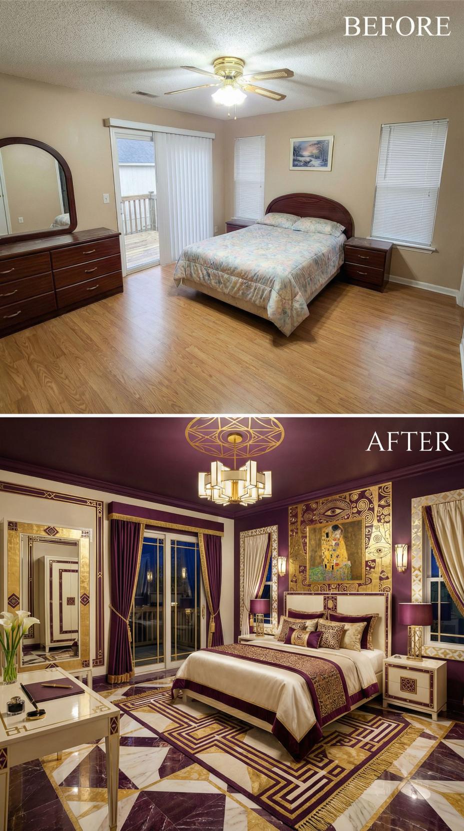 From Builder Grade Bedroom to Luxurious Art Deco Palace Suite