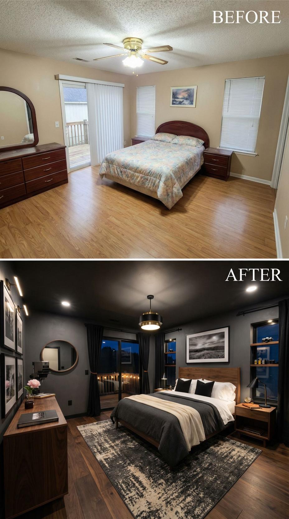 From Builder Grade Bedroom to Moody Industrial Sanctuary