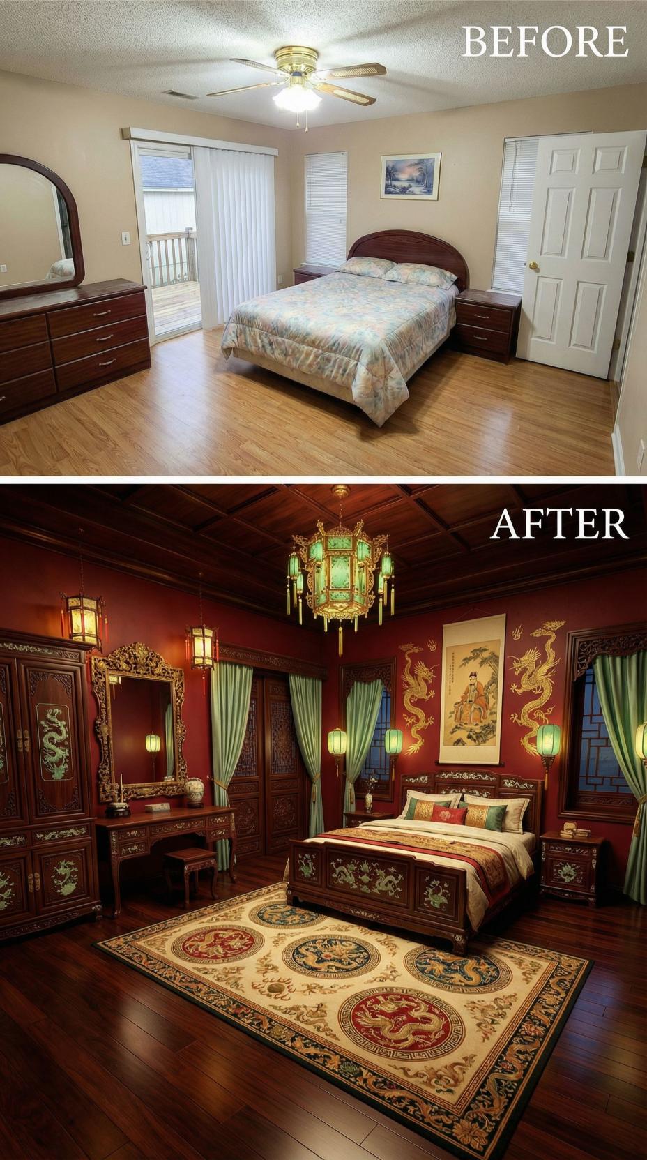 From Builder Grade Bedroom to Opulent Chinese-Inspired Palace