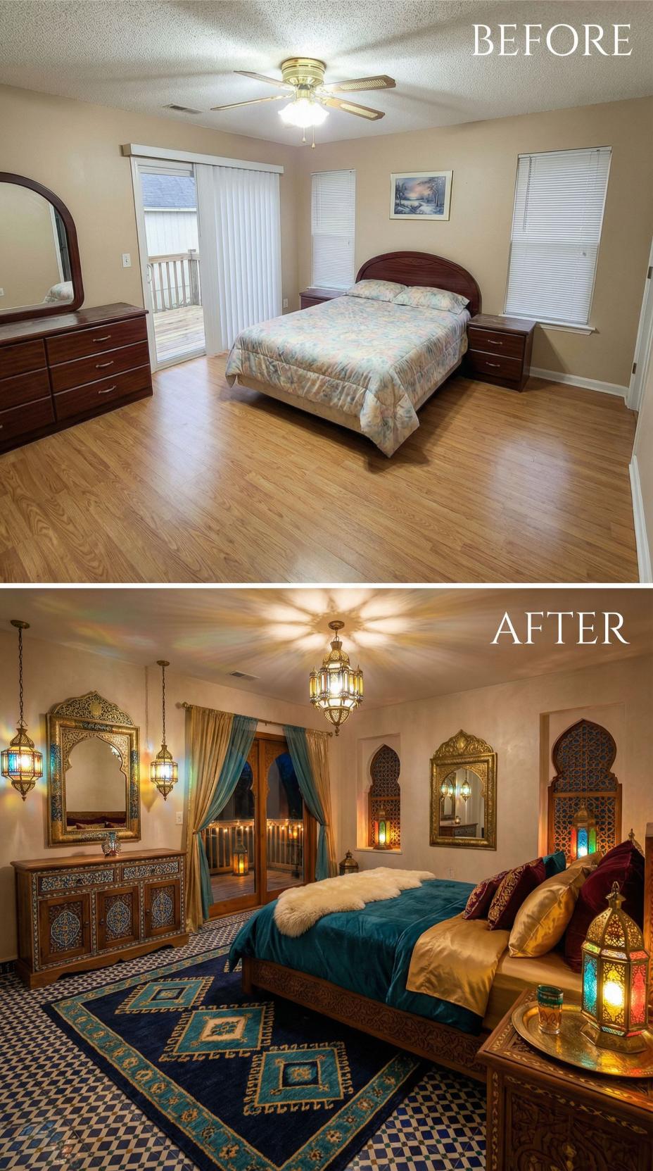 From Builder Grade Bedroom to Moroccan Palace Sanctuary