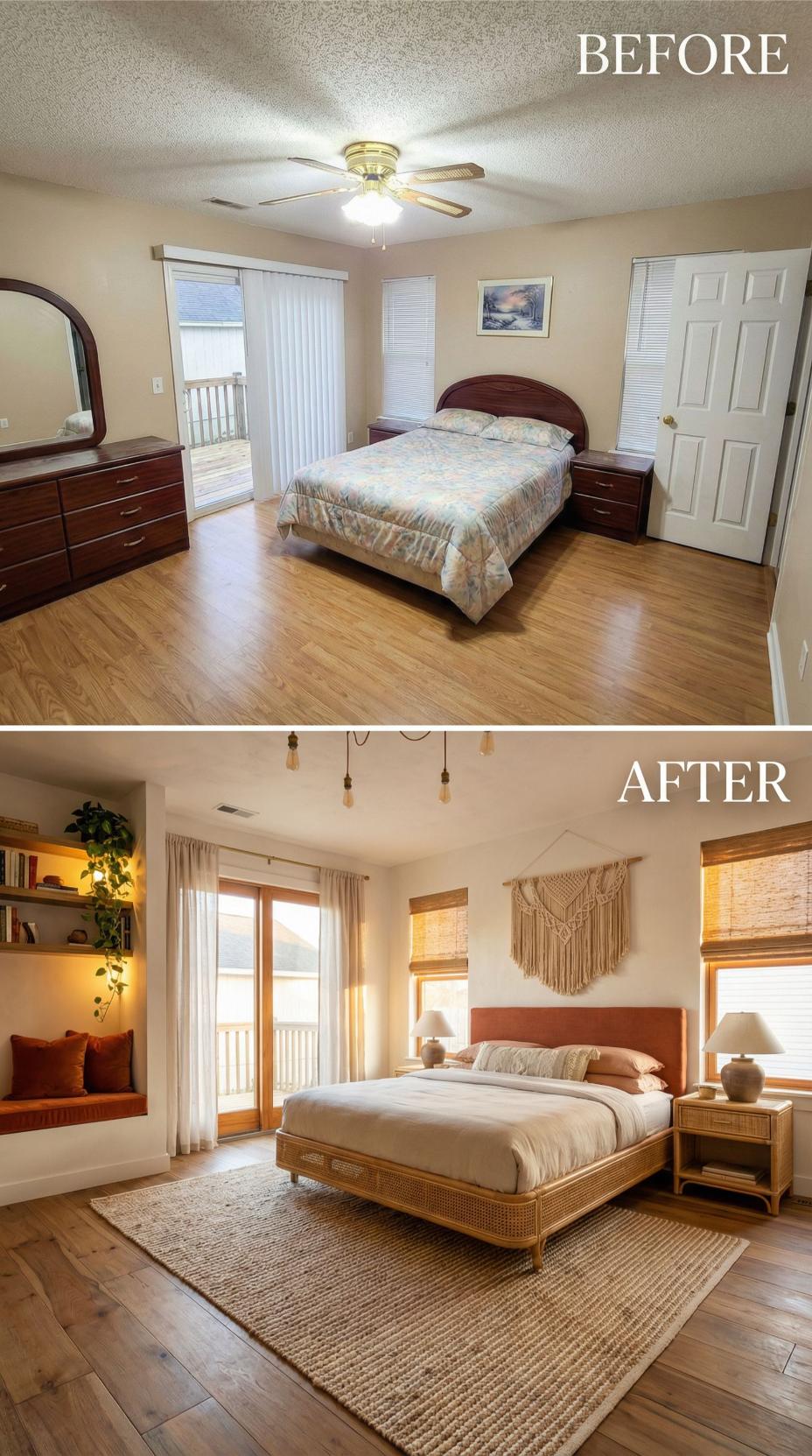 From Builder Grade Bedroom to Warm Bohemian Retreat