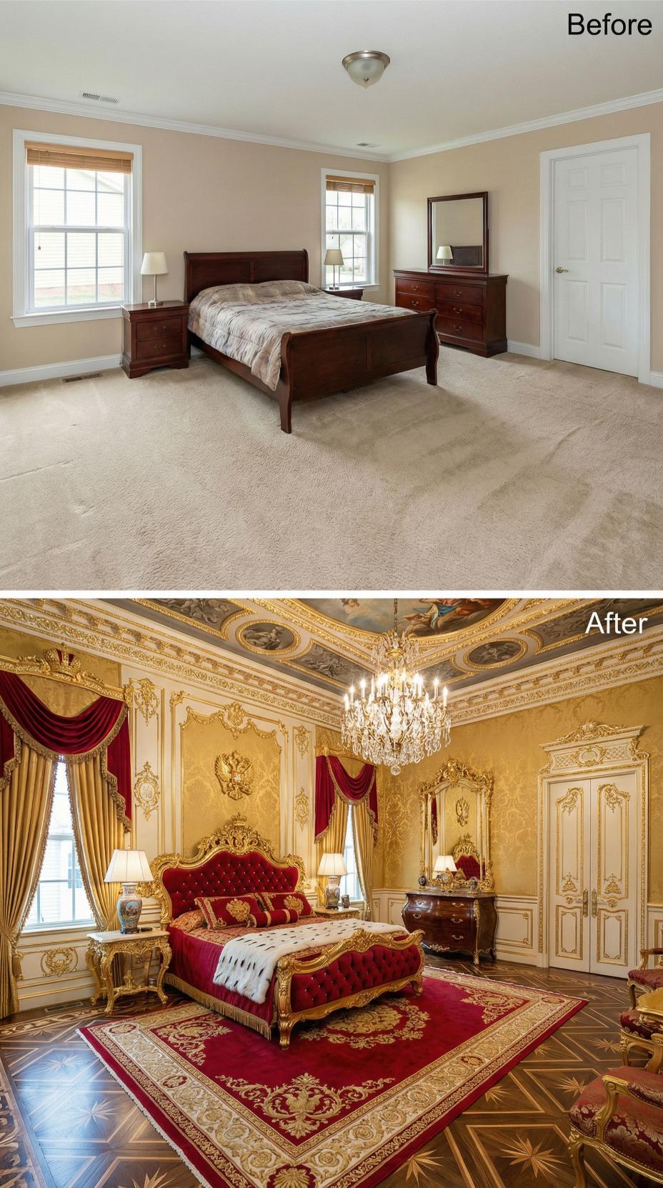 From Builder Grade Bedroom to Opulent Baroque Palace Suite