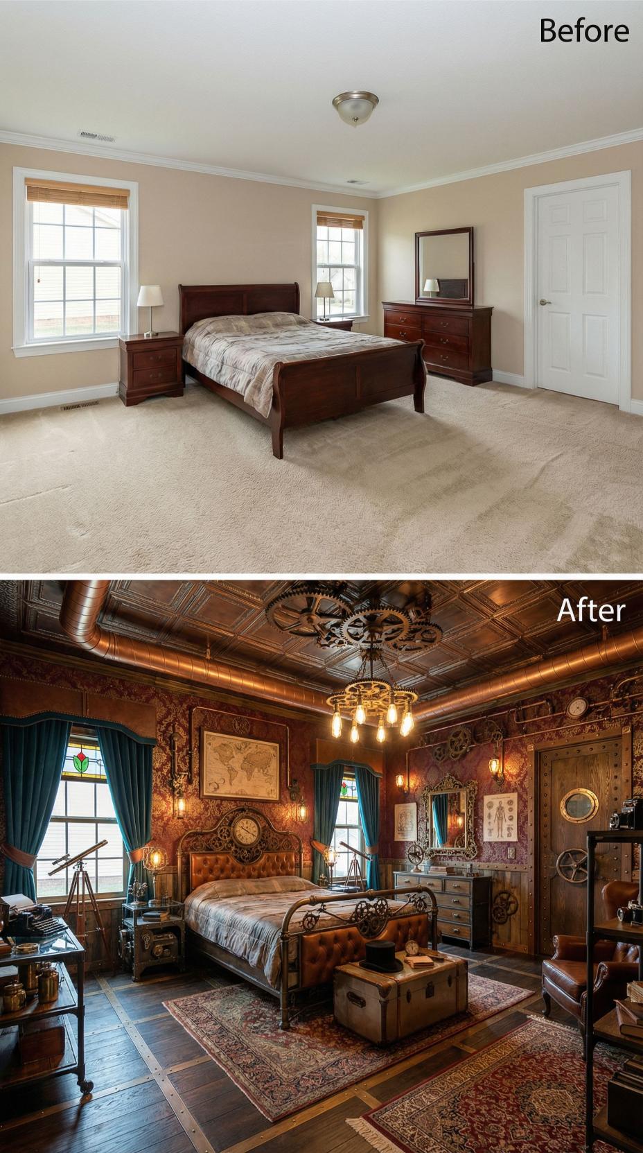 From Builder Grade Bedroom to Victorian Steampunk Adventure Haven