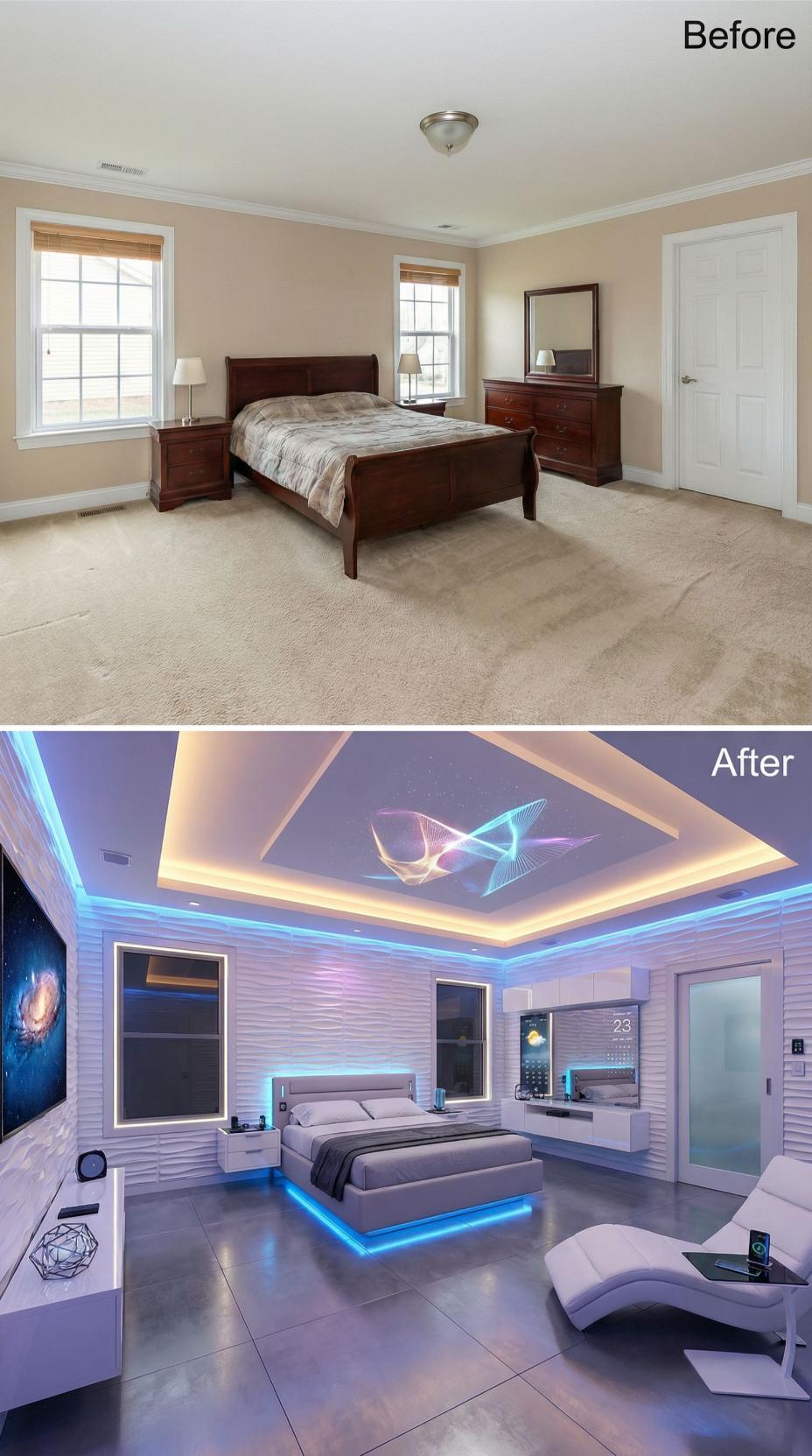 From Builder Grade Bedroom to Futuristic Smart Suite with LED Ambiance