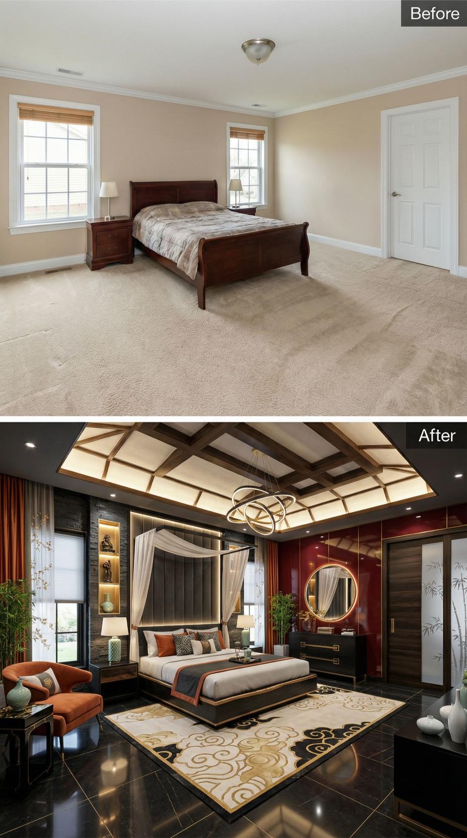From Builder Grade Bedroom to Luxurious Asian-Inspired Sanctuary