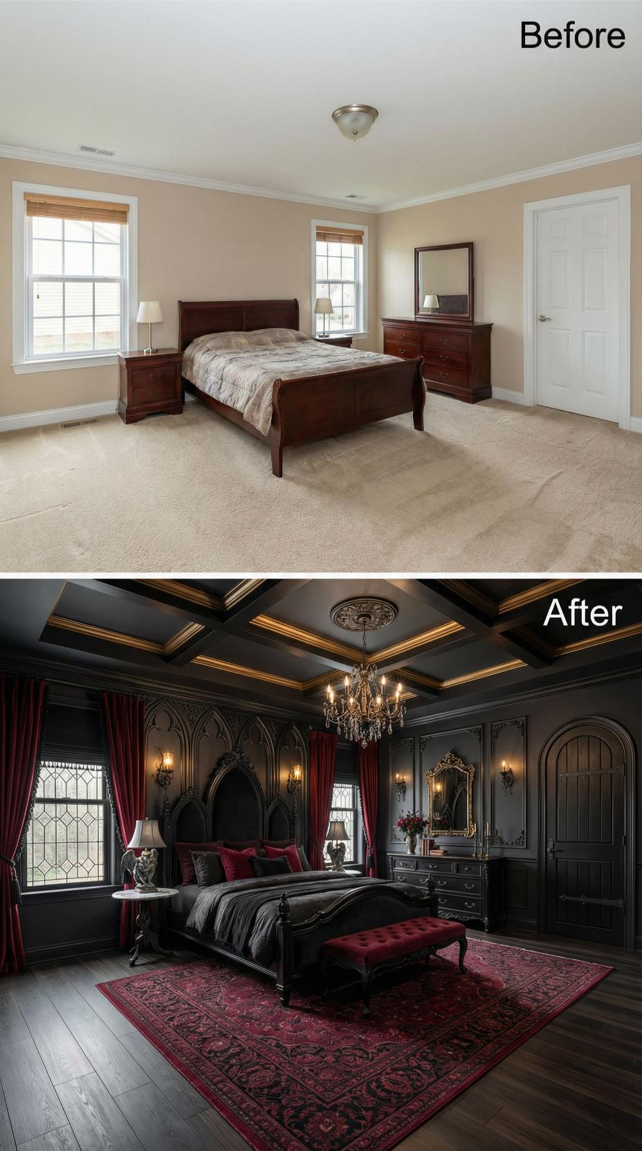 From Builder Grade Bedroom to Gothic Romance Sanctuary