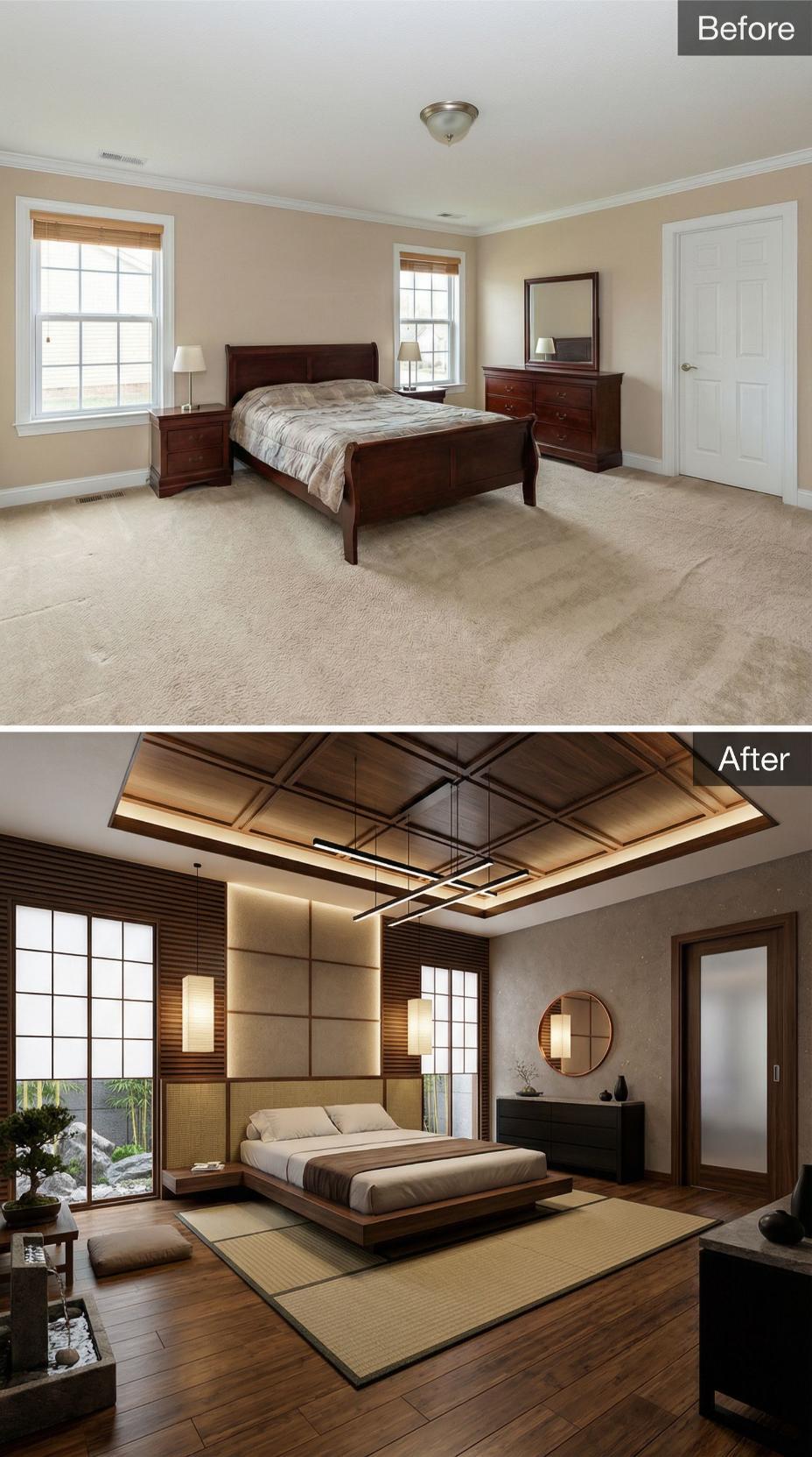From Builder Grade Bedroom to Japanese-Inspired Zen Sanctuary