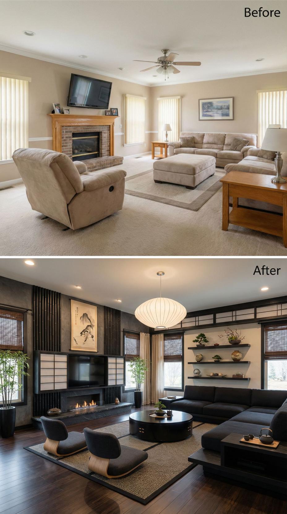 From Bland Builder Grade to Dramatic Japanese-Inspired Sanctuary
