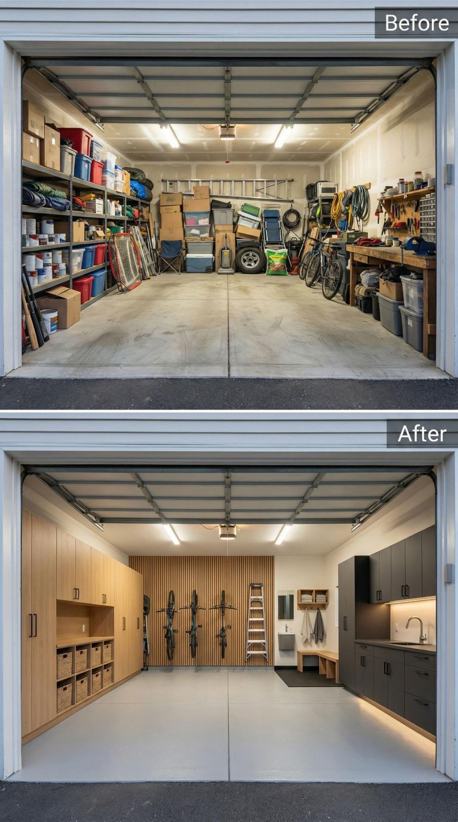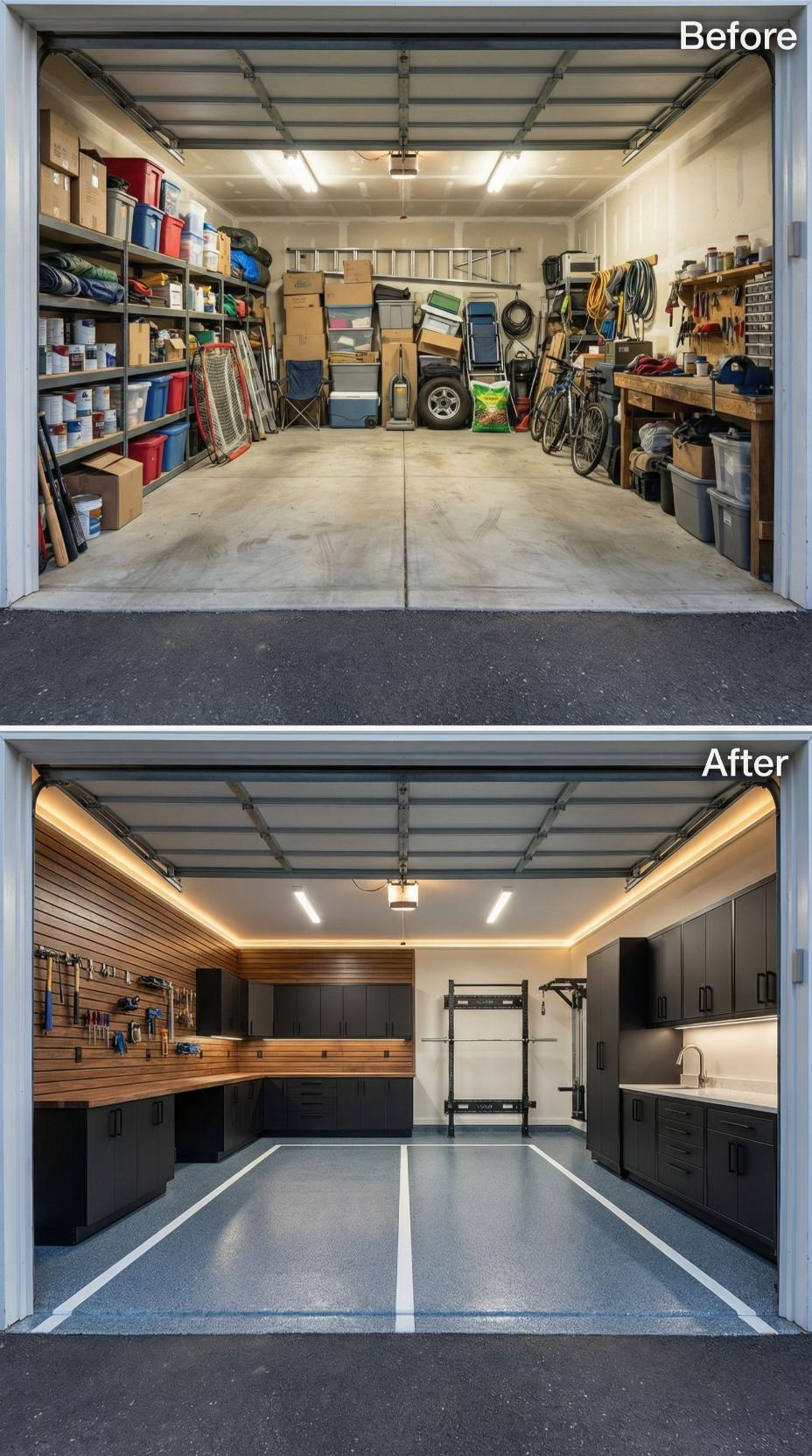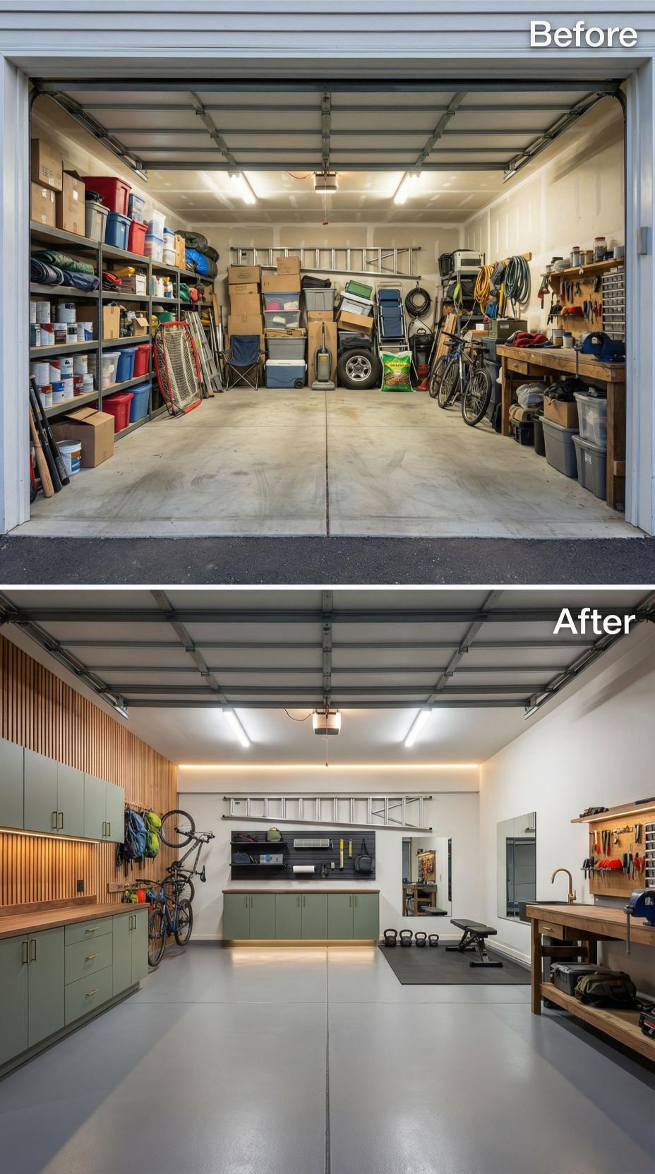 From Cluttered Storage Space to Modern Garage Workshop Haven
