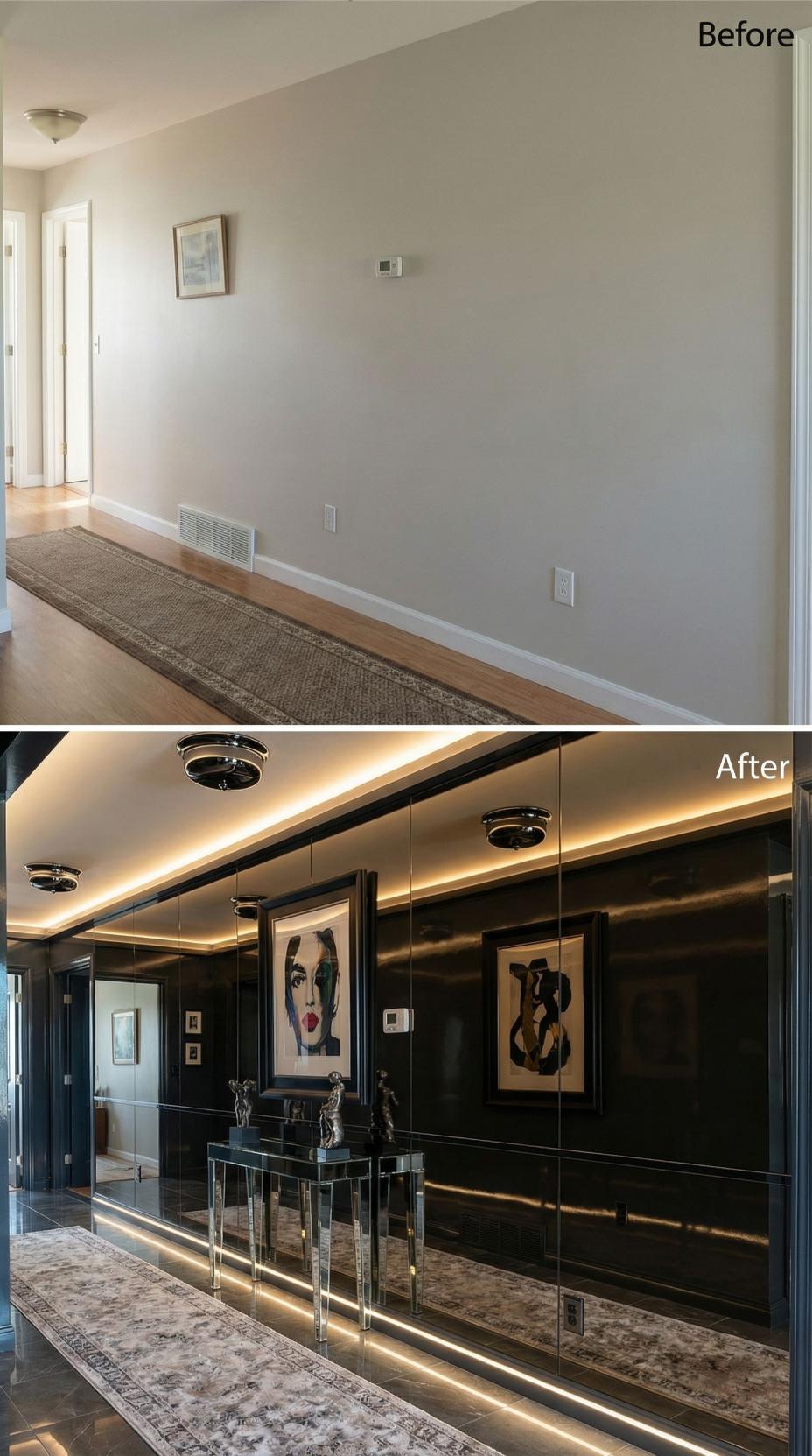 From Builder Grade Hallway to Luxurious Mirrored Gallery