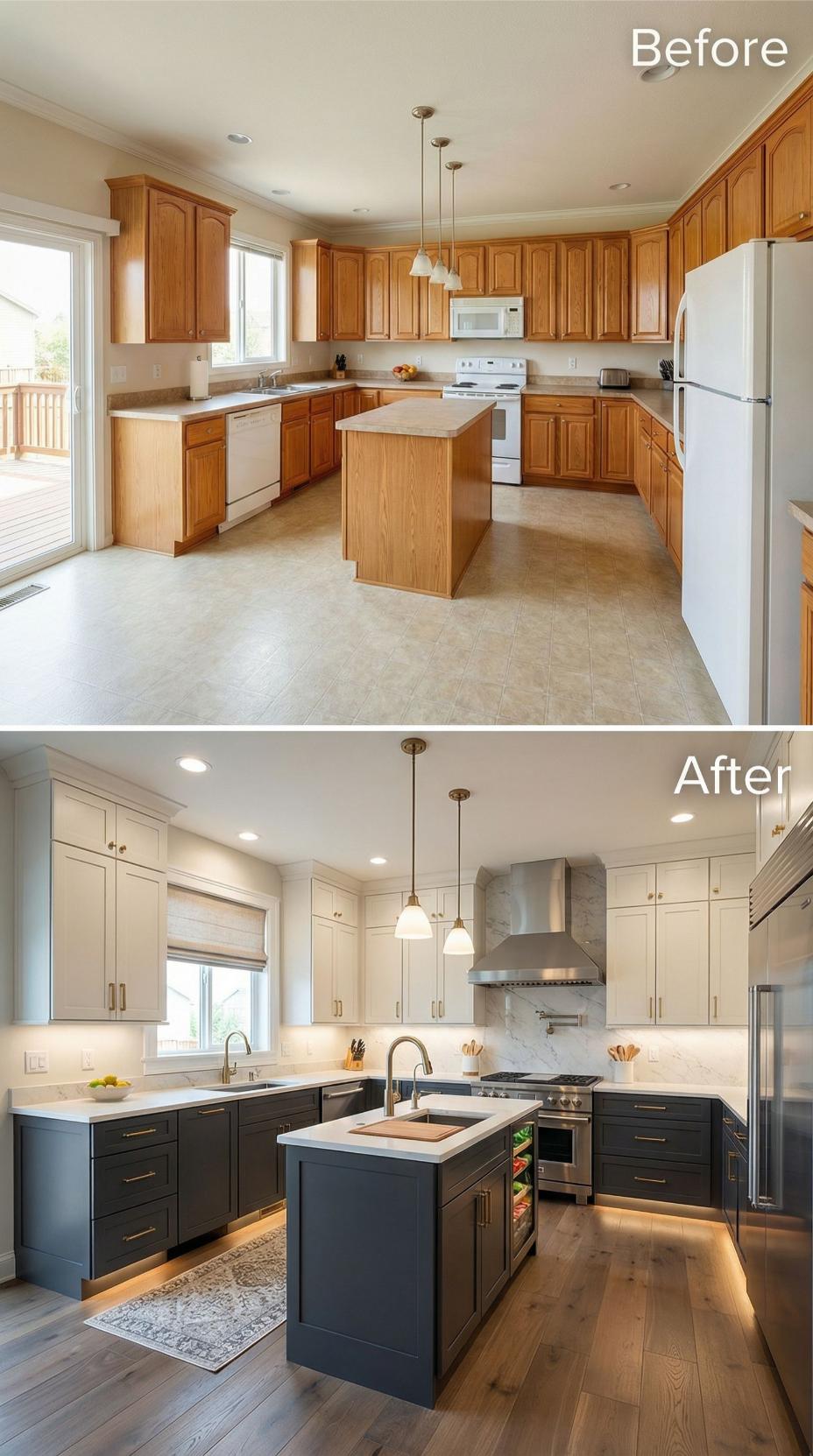 From Builder Grade Oak to Contemporary Two-Tone Sophistication