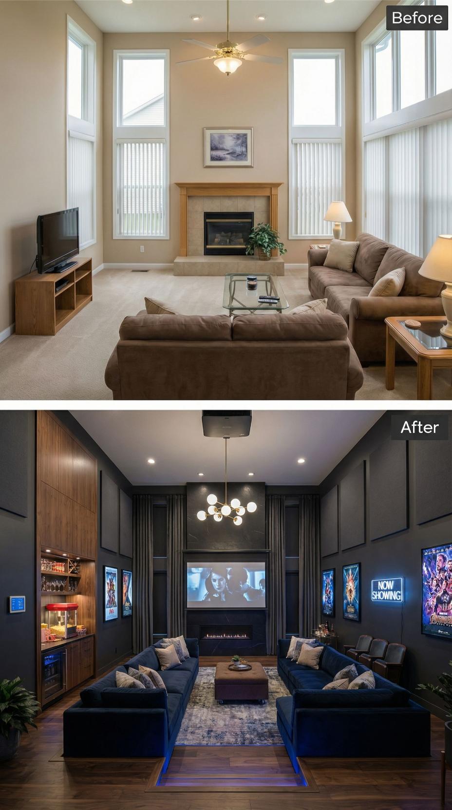From Builder Grade Beige to Cinematic Entertainment Haven