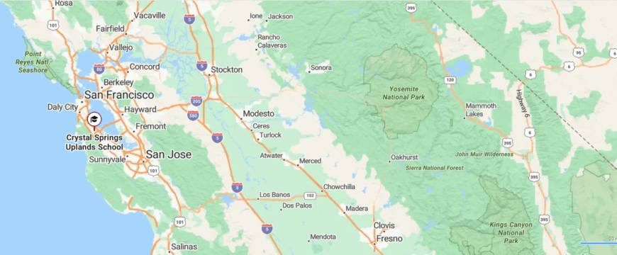 Crystal Springs Uplands School is in Hillsborough, California, a quiet residential town on the San Francisco Peninsula. The area is recognized for its scenic hillsides, historic estates, and close-knit community atmosphere.