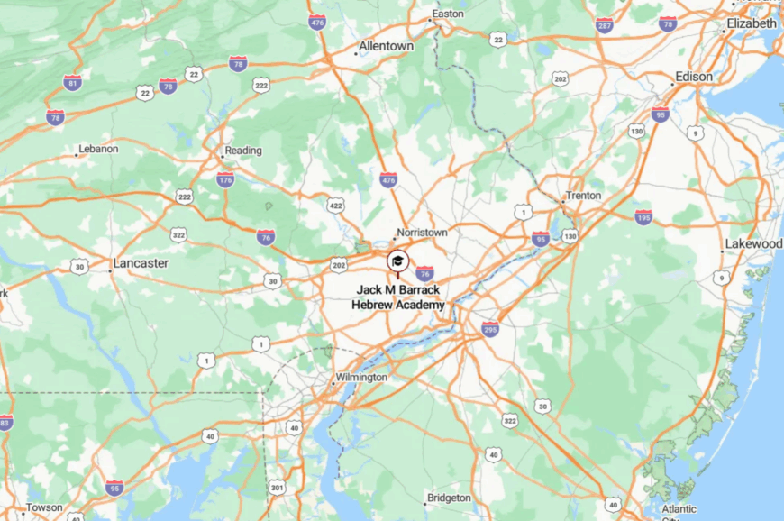 The school is in Bryn Mawr, Pennsylvania, on the Main Line. Its location provides access to synagogues, universities, and cultural venues. Families value a welcoming campus with strong regional ties.