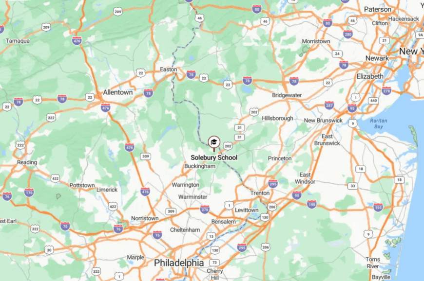 The school is in New Hope, Pennsylvania, near the Delaware River and historic Bucks County towns. Its scenic campus offers quiet focus with easy access to galleries, theaters, and outdoor trails. Families value the blend of small-town charm and regional opportunities.