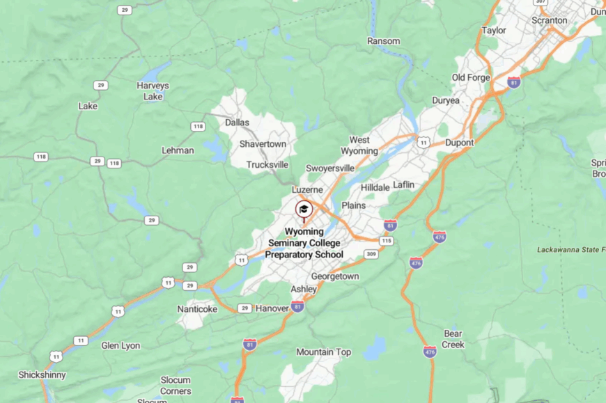 The school is in Kingston, Pennsylvania, across the river from Wilkes-Barre. Its location provides access to regional universities, civic partners, and mountain recreation. Families appreciate convenient travel routes and a cohesive campus.