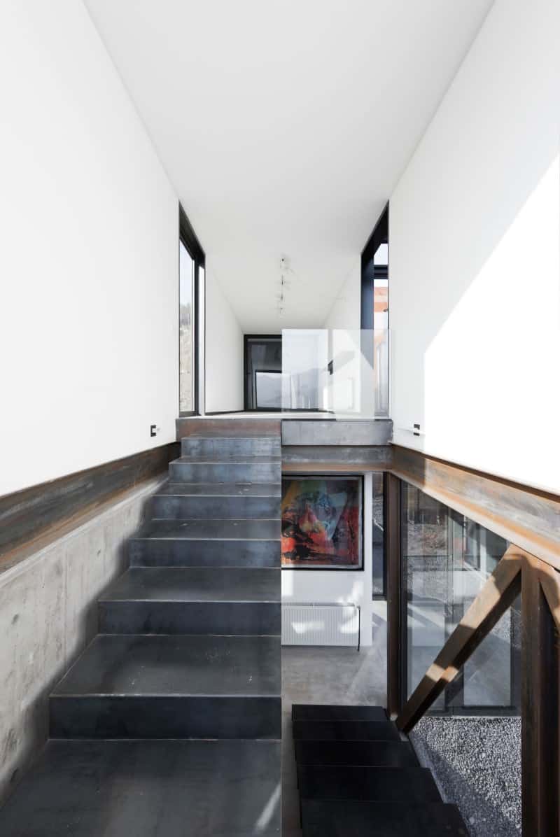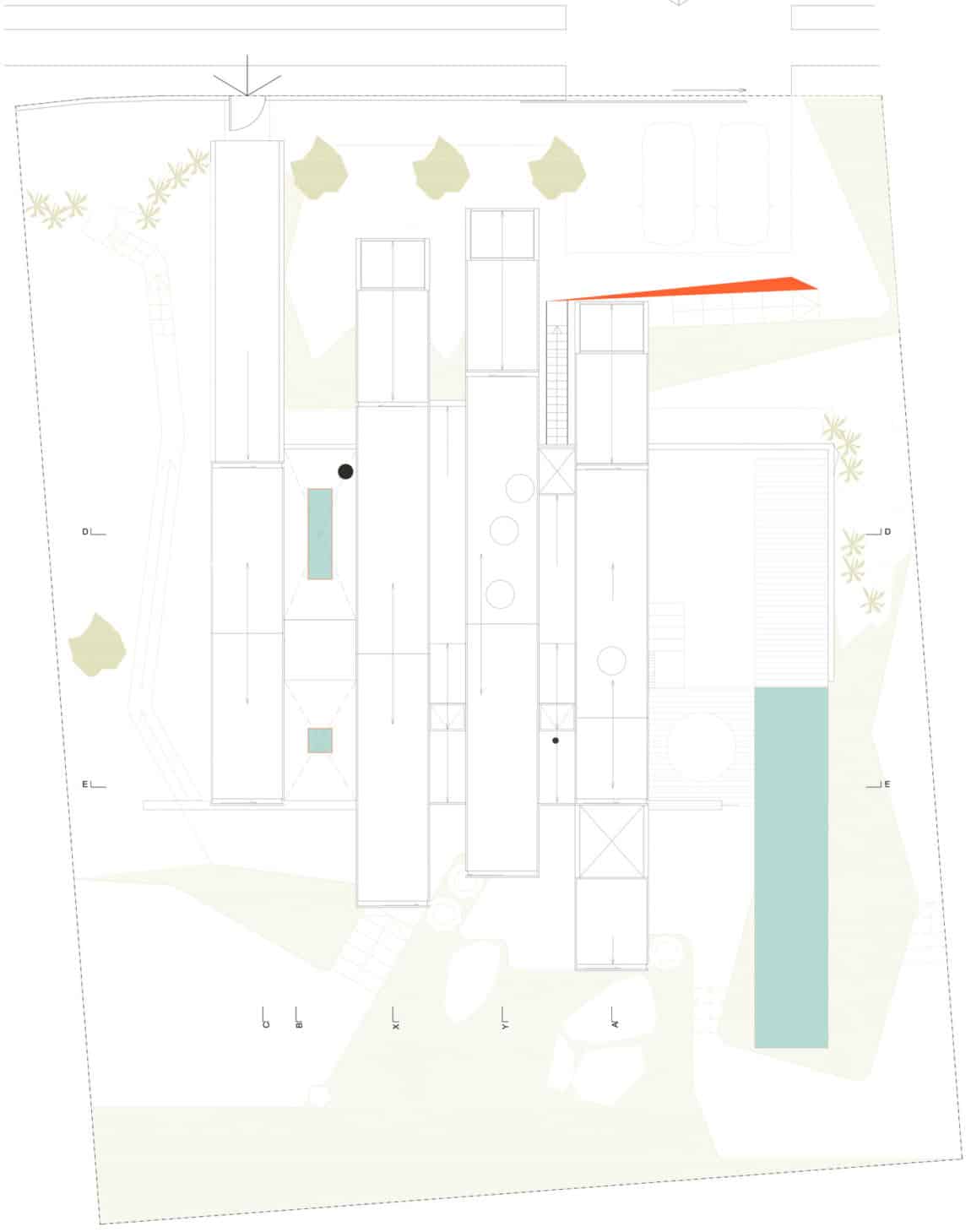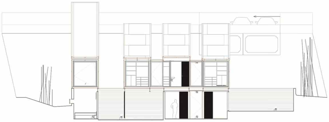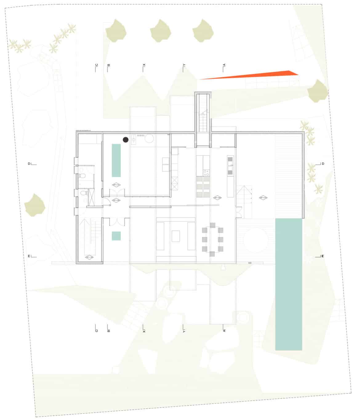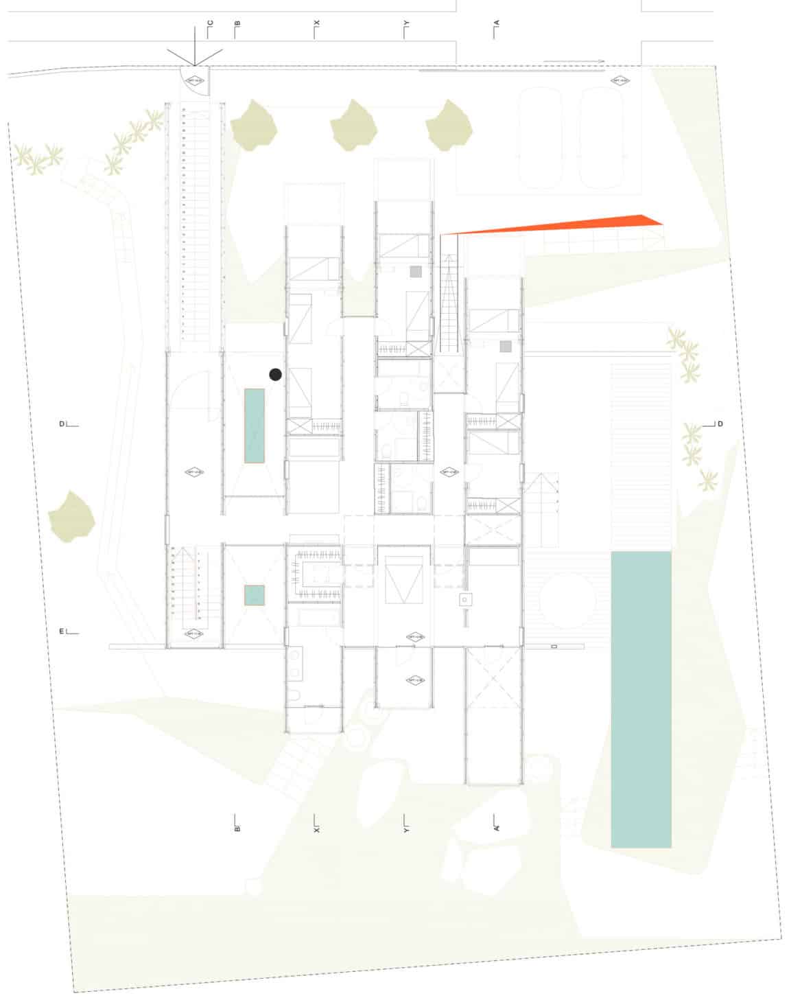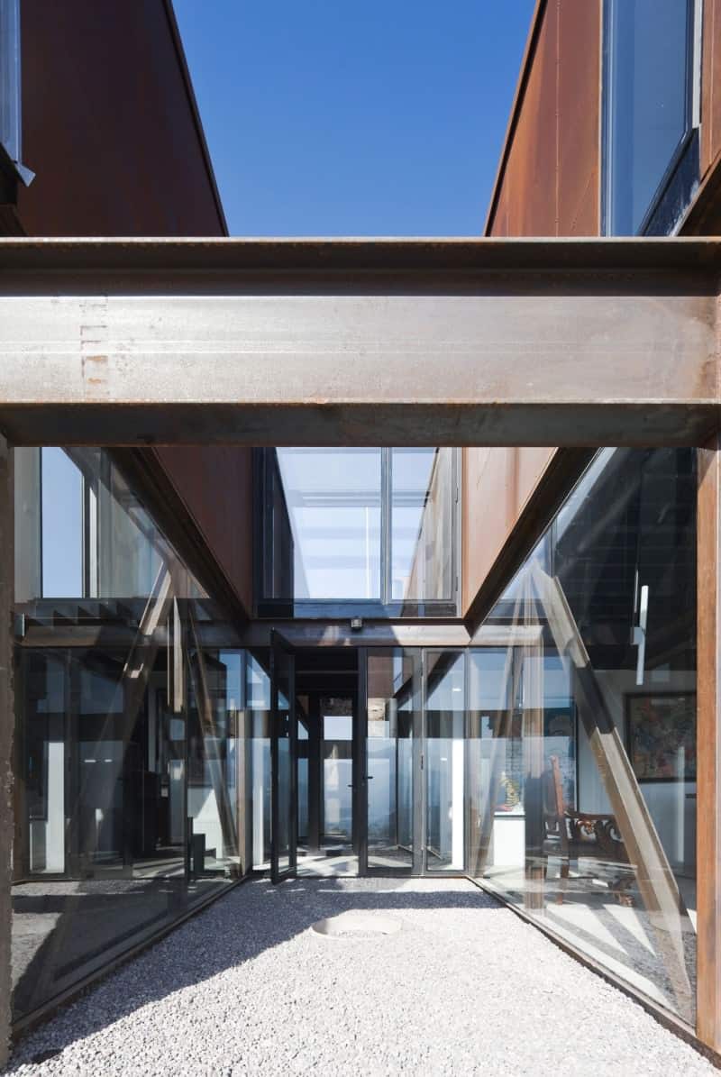 This shipping container home was built with five 40′ containers, six 20′ containers and one 40′ open top for the swimming pool.