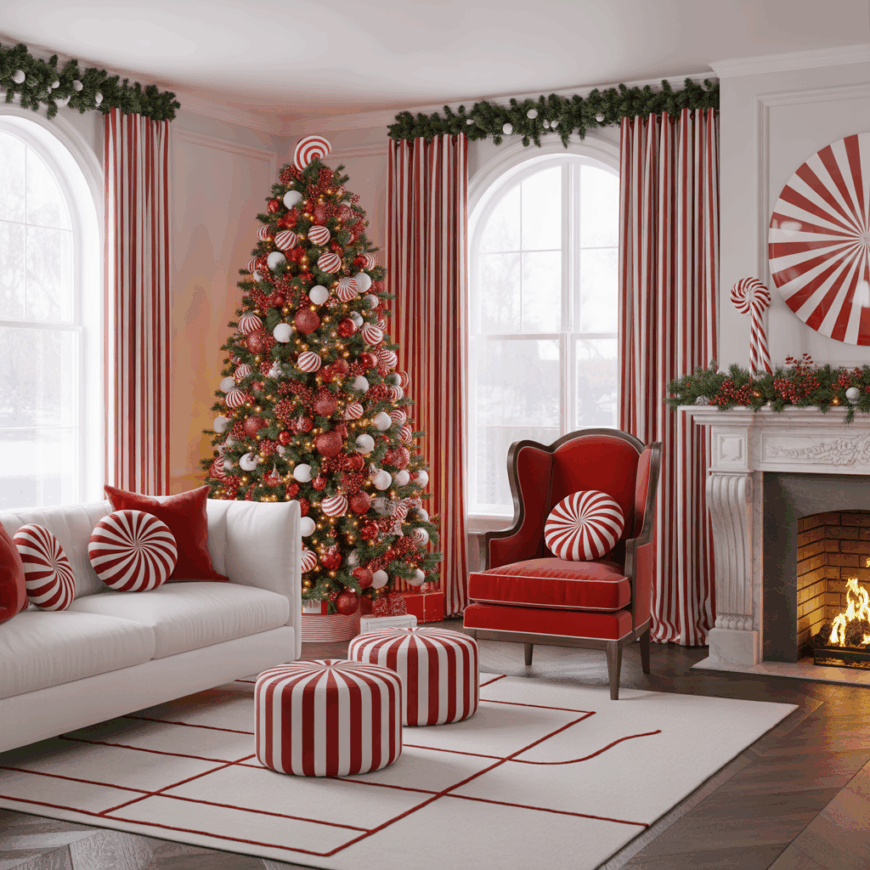 Red and white everywhereโsomeone definitely committed. Itโs crisp, bold, and peppermint-coded. Instant holiday cheer.