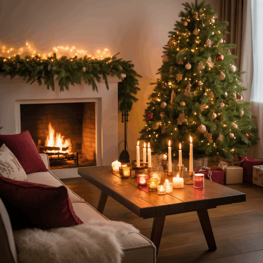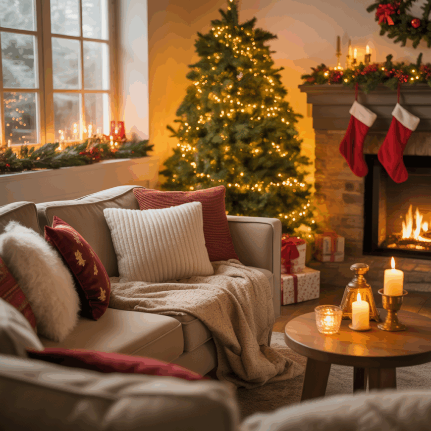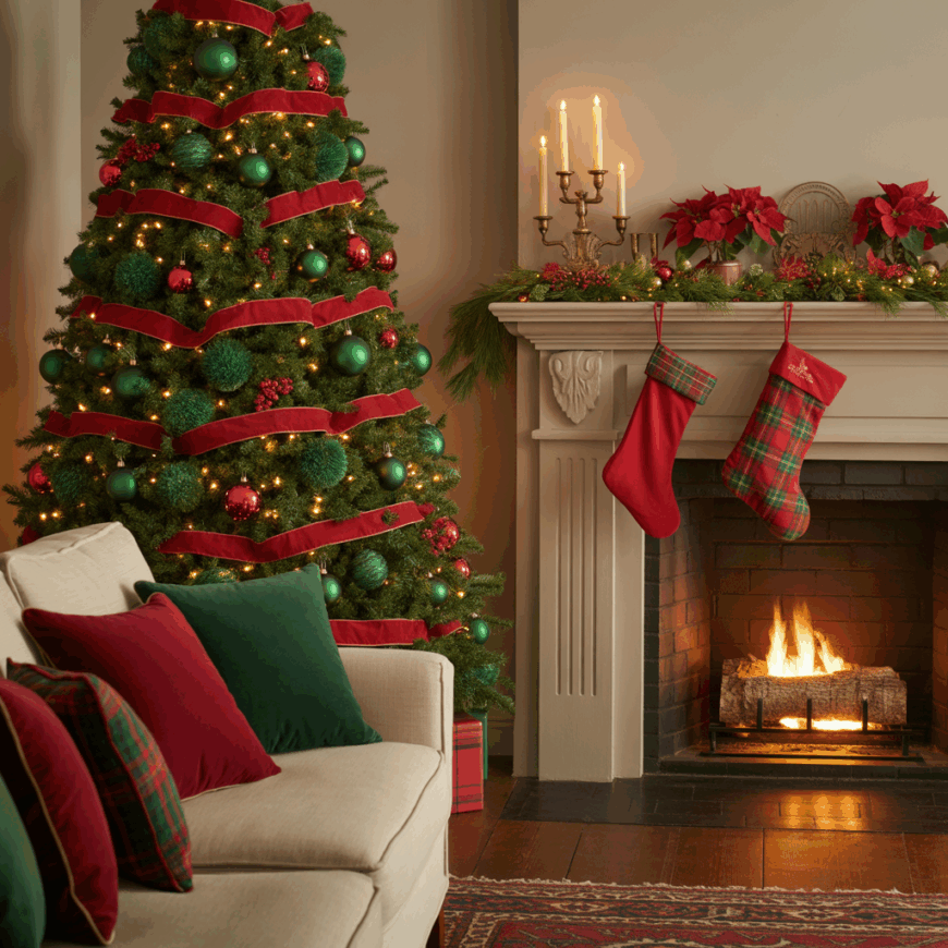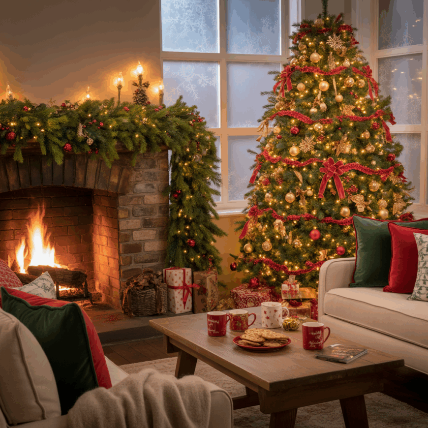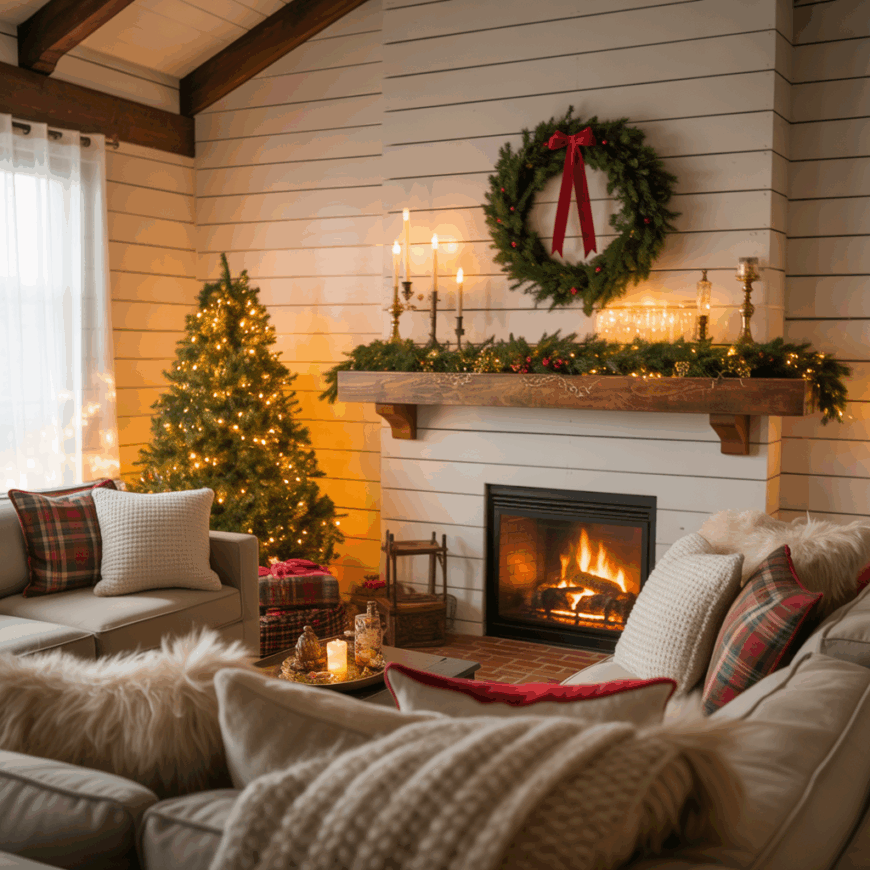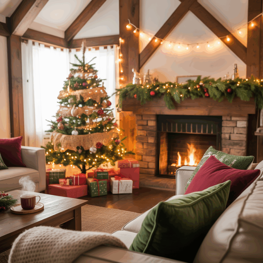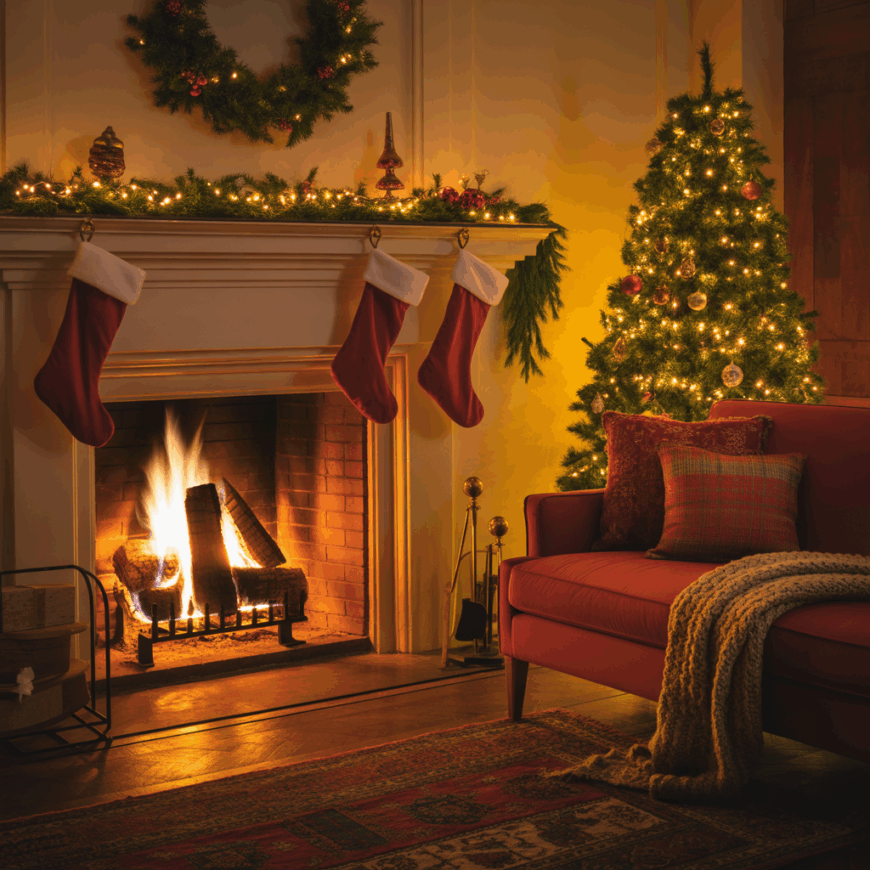 Sure, the tree is cuteโbut that fireplace is the main character. Crackling, glowing, absolutely flirting with you. Even the Grinch would snuggle here.