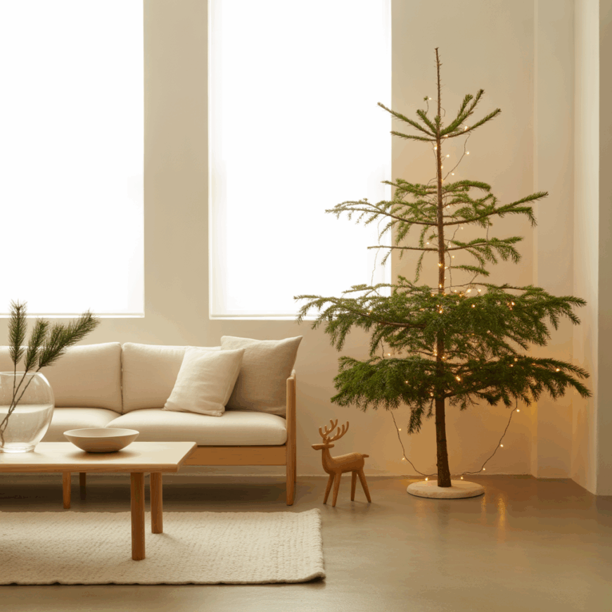 Soft woods, clean whites, and a gentle twinkle. Minimalistic but warm. It’s winter serenity, not winter depression.