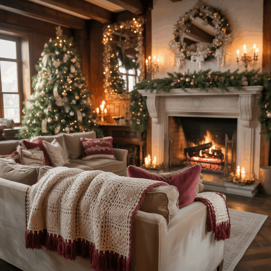 All the nostalgic chaosโnone of the plastic couch covers. Think crocheted blankets, glittery ornaments, and faint cinnamon scent. Itโs cozy, chaotic, and somehow perfect.
