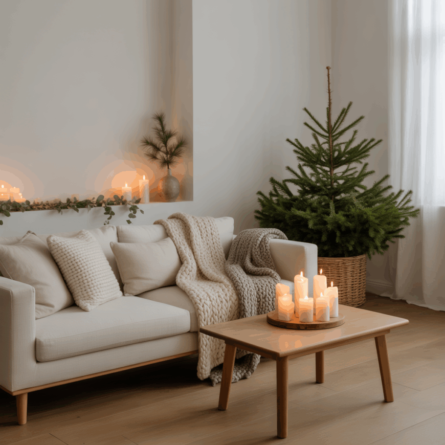 Soft neutrals, glowing candles, and gentle greenery. Itโs minimalism without the emotional emptiness. A warm hug in living room form.