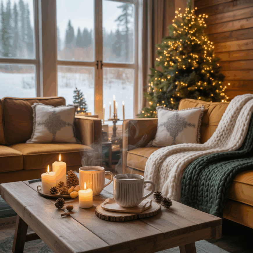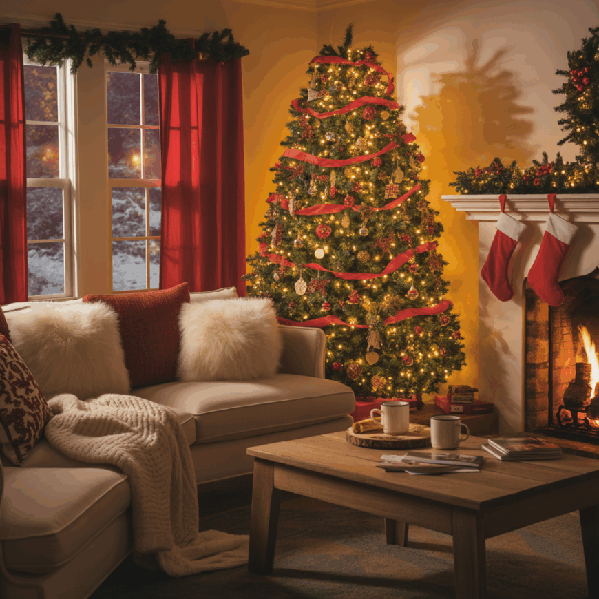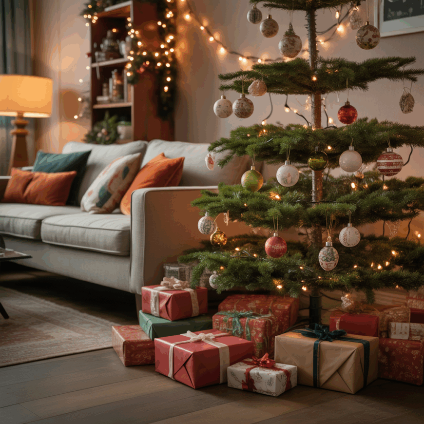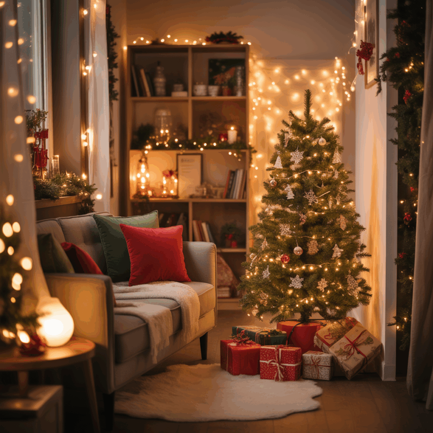 Warm lights, soft blankets, and a corner that practically begs you to rethink your life. Perfect for wrapping presents while contemplating your choices. The emotional support living room.