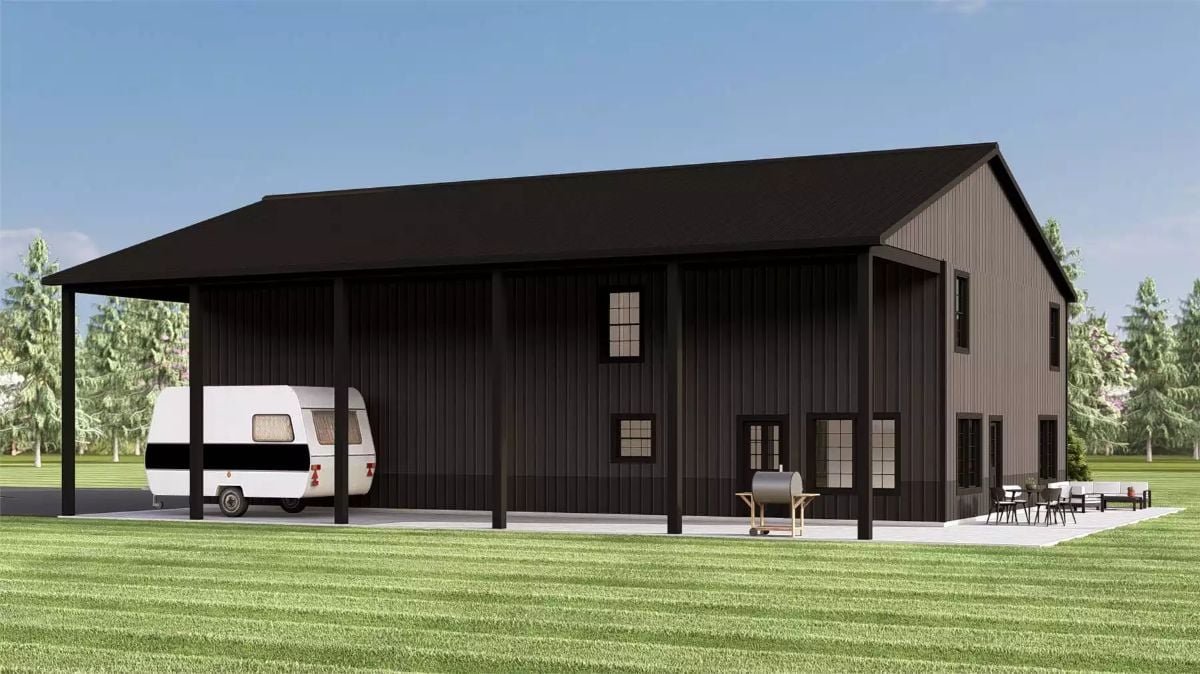 This home pairs the clean, practical look of a barndominium with a layout thatโs designed for everyday comfort and convenience. The main level is anchored by an open living room and kitchen that feel connected without being cramped, making it easy to cook, relax, and spend time together in one shared space. A large kitchen island adds extra workspace and serves as a natural spot for casual meals, conversation, or quick snacks.