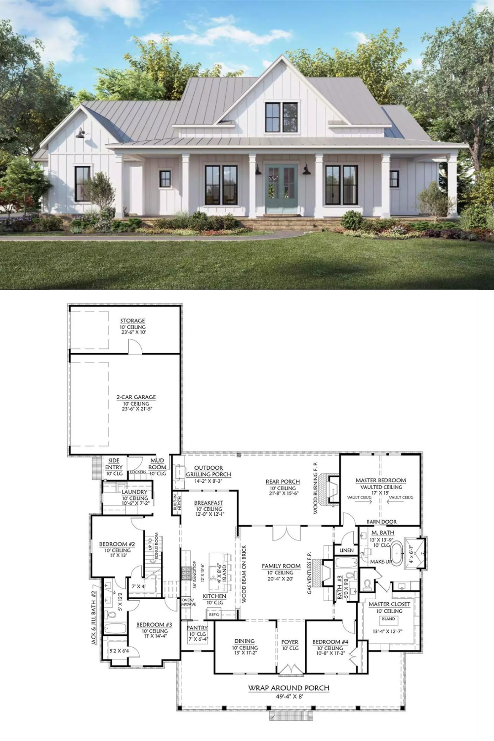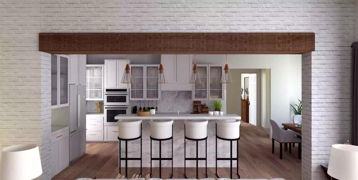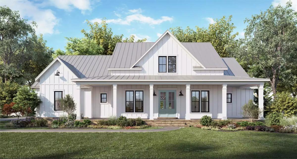 There is true beauty in simplicity, and this lovely farmhouse proves that. An overwhelmingly beautiful curb appeal beckons you up onto the covered wrap-around porch and inside. Once past the dual front doors, you are greeted by a totally open and accessible layout of 2,716 square feet, providing 4 bedrooms and 3 bathrooms.