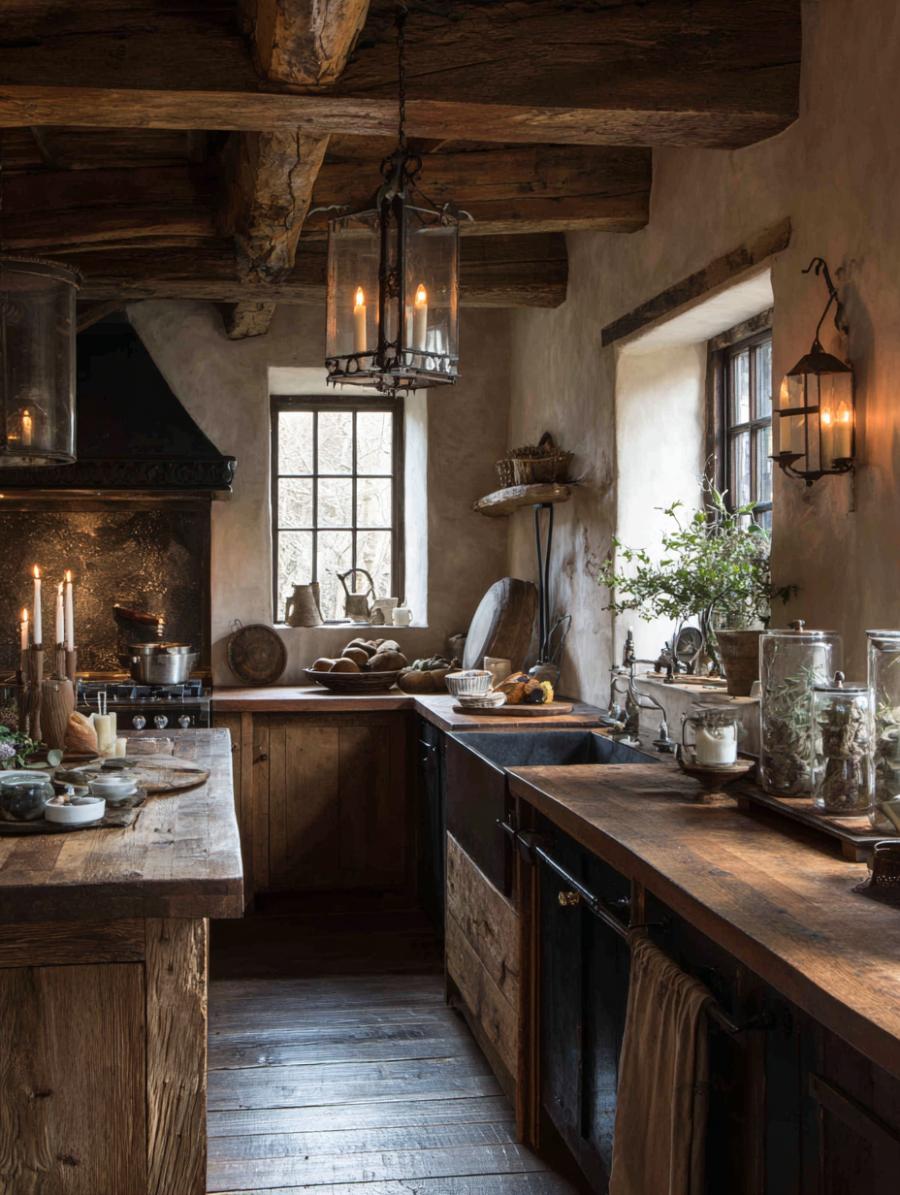 Weathered Wood and Candlelight Create Medieval Kitchen Magic