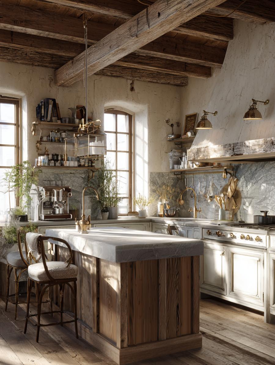 Weathered Wood and Stone Create Ultimate Cozy Kitchen Sanctuary