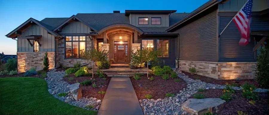 Warm Stone and Timber Light Up the Night on This Craftsman Exterior
