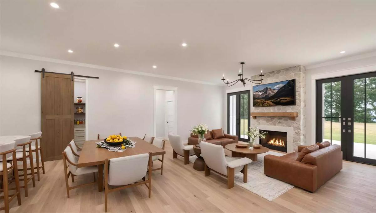 The open floor plan seamlessly connects the living, dining, and L-shaped kitchen, making it perfect for family living and entertaining. The primary suite serves as a luxurious retreat with an ensuite bathroom that includes dual vanities and a spacious walk-in closet.