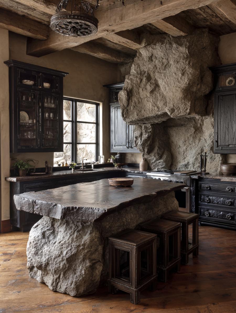 Canyon-Inspired Rustic Kitchen with Sculptural Stone Elements