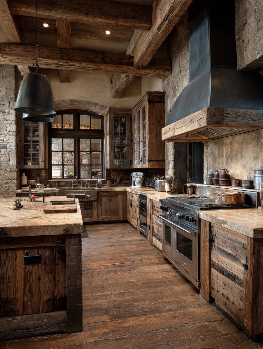 Rustic Luxury Kitchen with Reclaimed Barnwood and Stone Accents