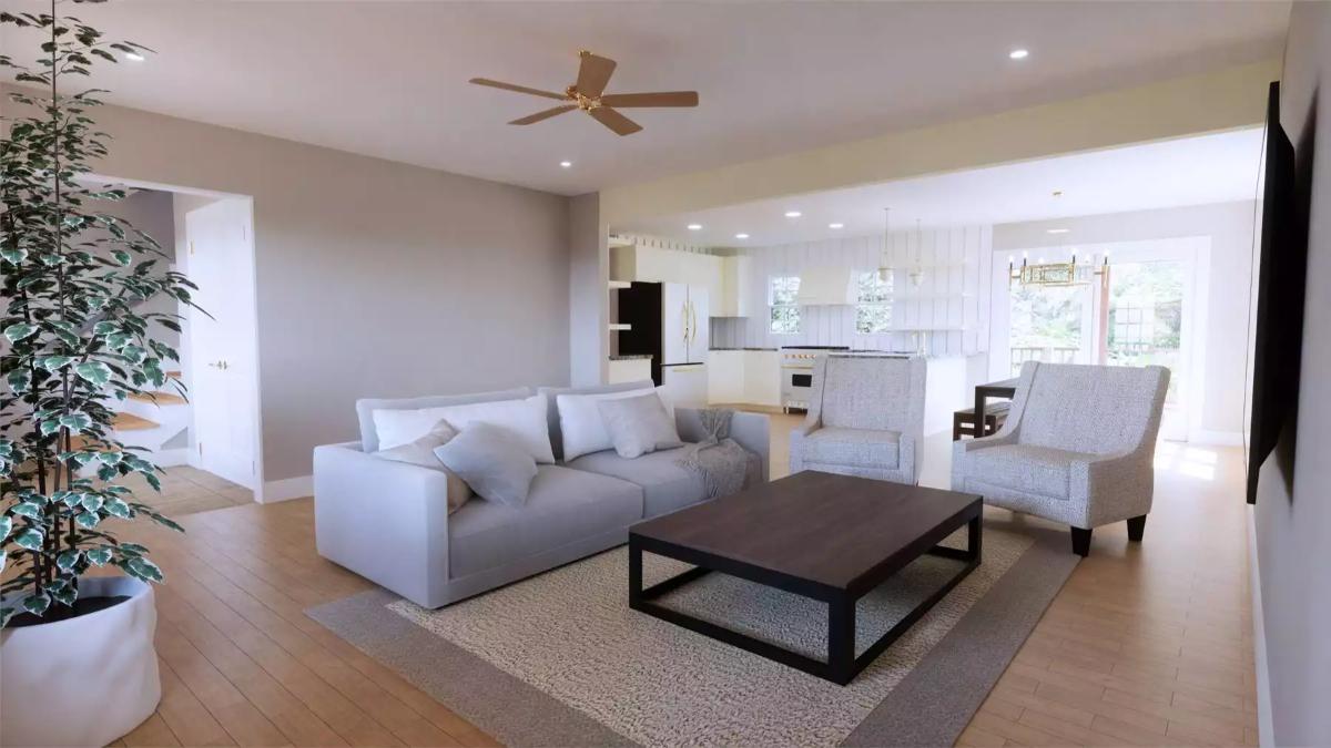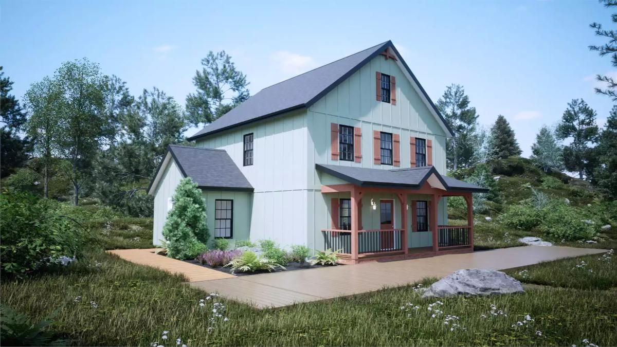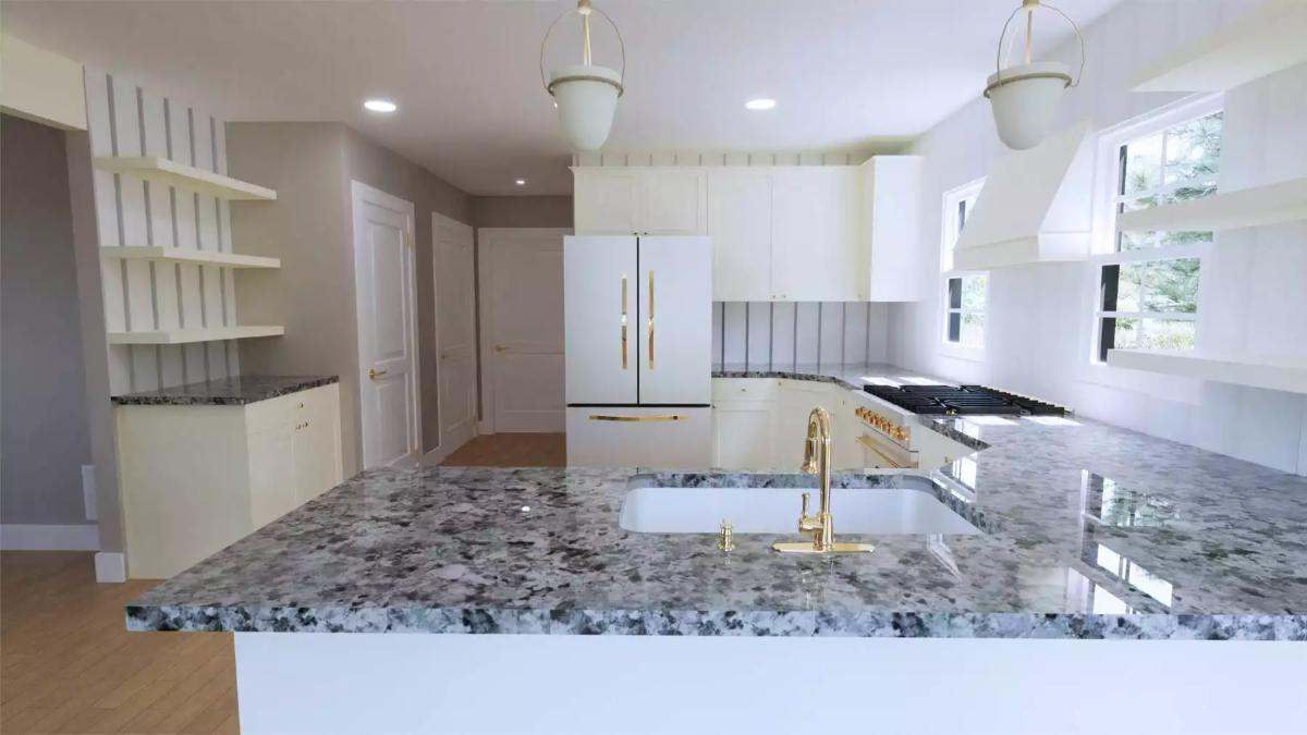 A welcoming covered front porch introduces this warm and efficient two-story home. Inside, the U-shaped kitchen provides an organized workspace, complemented by a generous walk-in pantry that keeps essentials within easy reach.