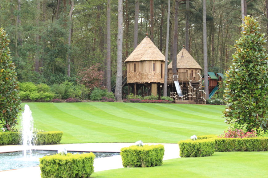 Welcome to today’s gallery featuring the enormous and incredible custom-built treehouse and adventure play area designed and built by BlueForest Tree House Design and Construction.