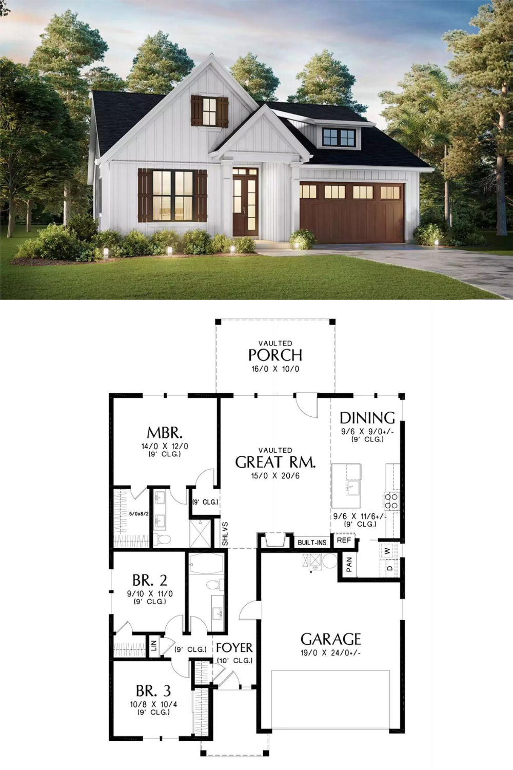 The picture-perfect family home, this stylish 3-bedroom farmhouse is a super practical find. Mixing the charming simplicity of a traditional farm-style plan with the accessibility and inclusiveness of a ranch layout, the 1,373 square foot design is great for bringing everyone together.