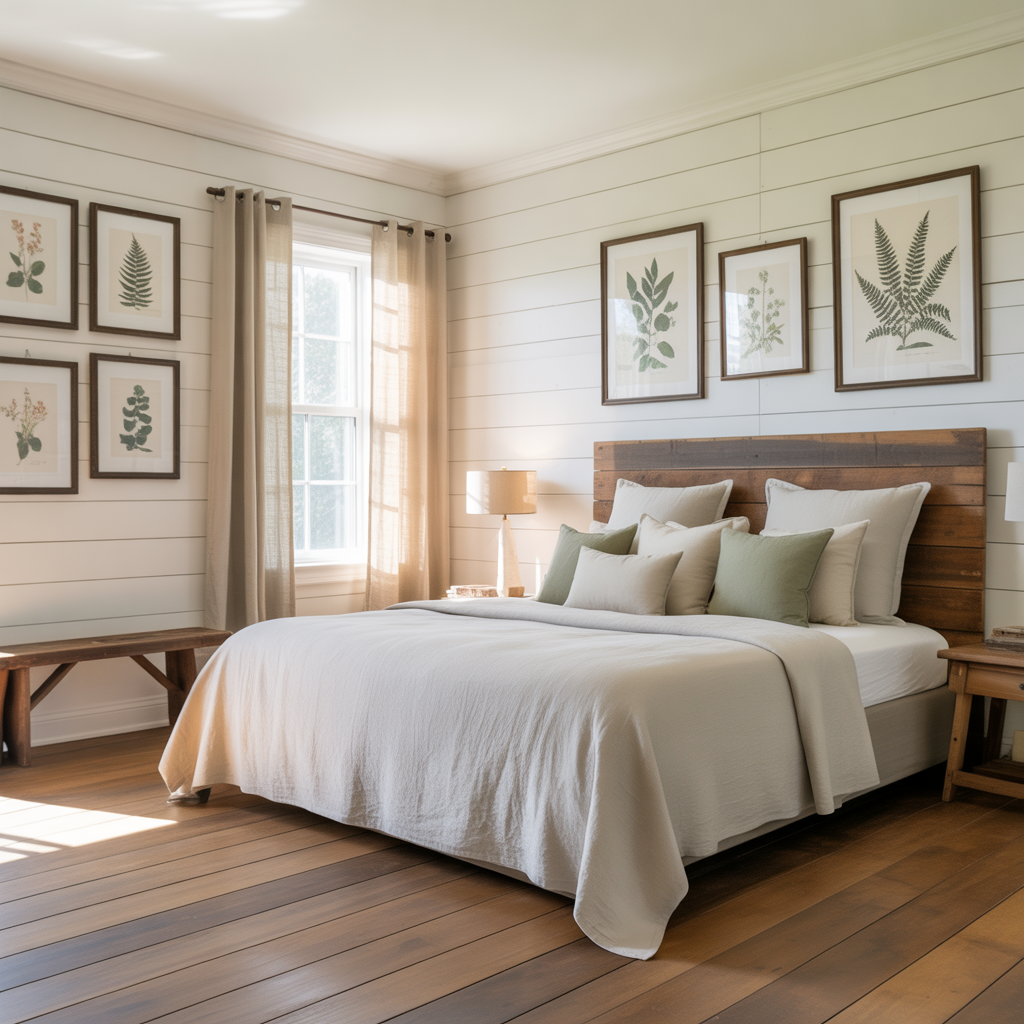Whether painted in crisp white or left in natural wood tones, shiplap introduces authentic craftsmanship that modern drywall simply cannot replicate. This feature works particularly well behind bed frames, creating an instant focal point that anchors the entire roomโs design narrative.