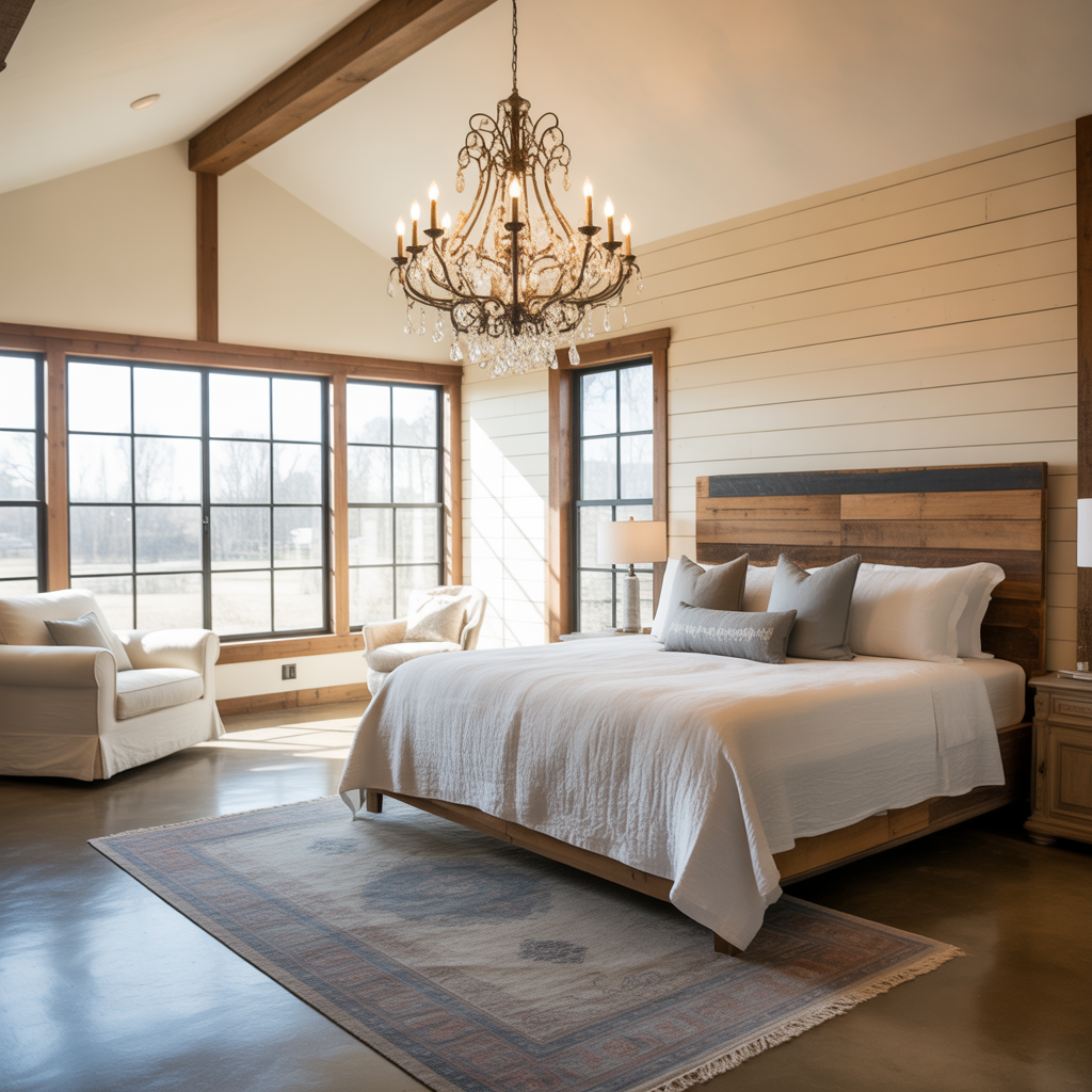 Rustic Farmhouse Bedroom with Reclaimed Wood