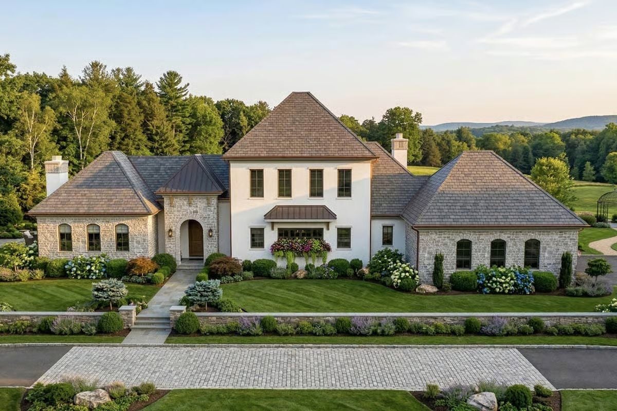 Symmetry and Earthy Tones Set the Tone in This French Country Living Room
