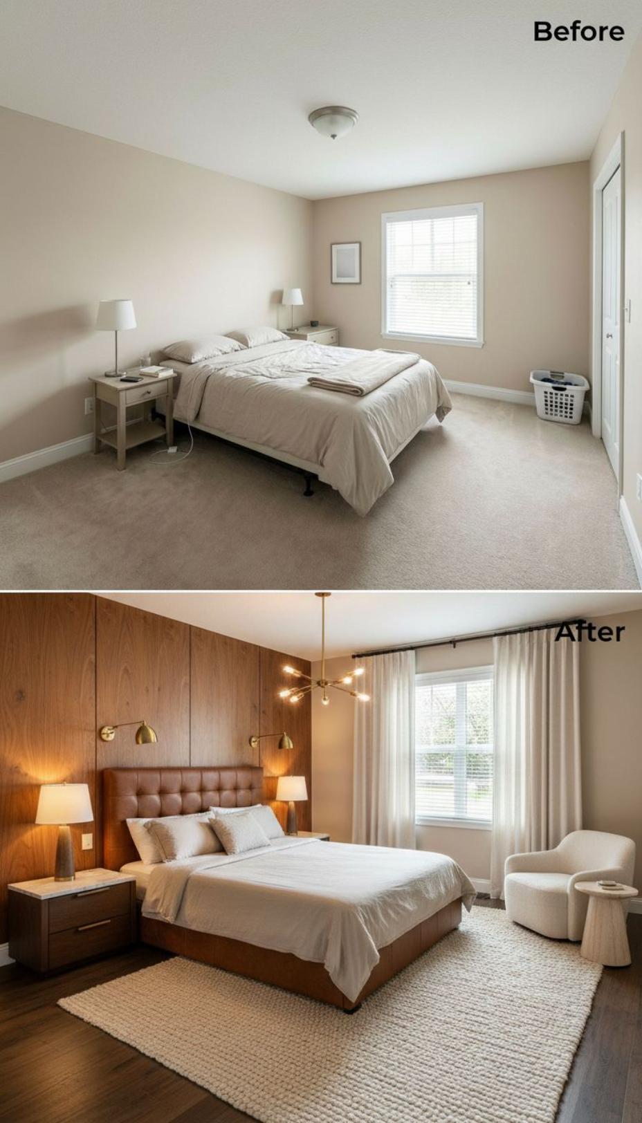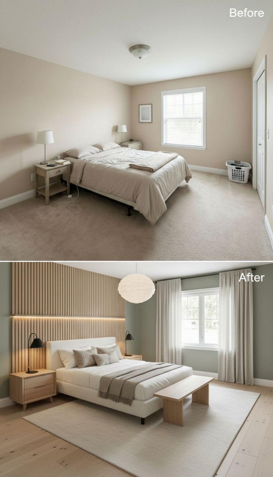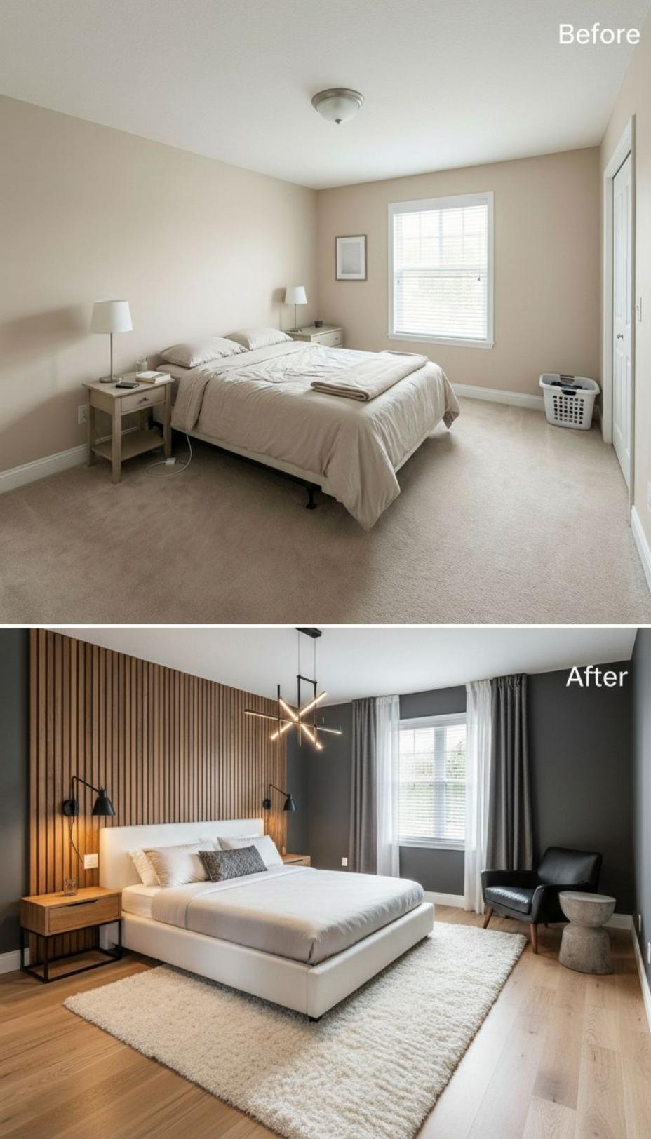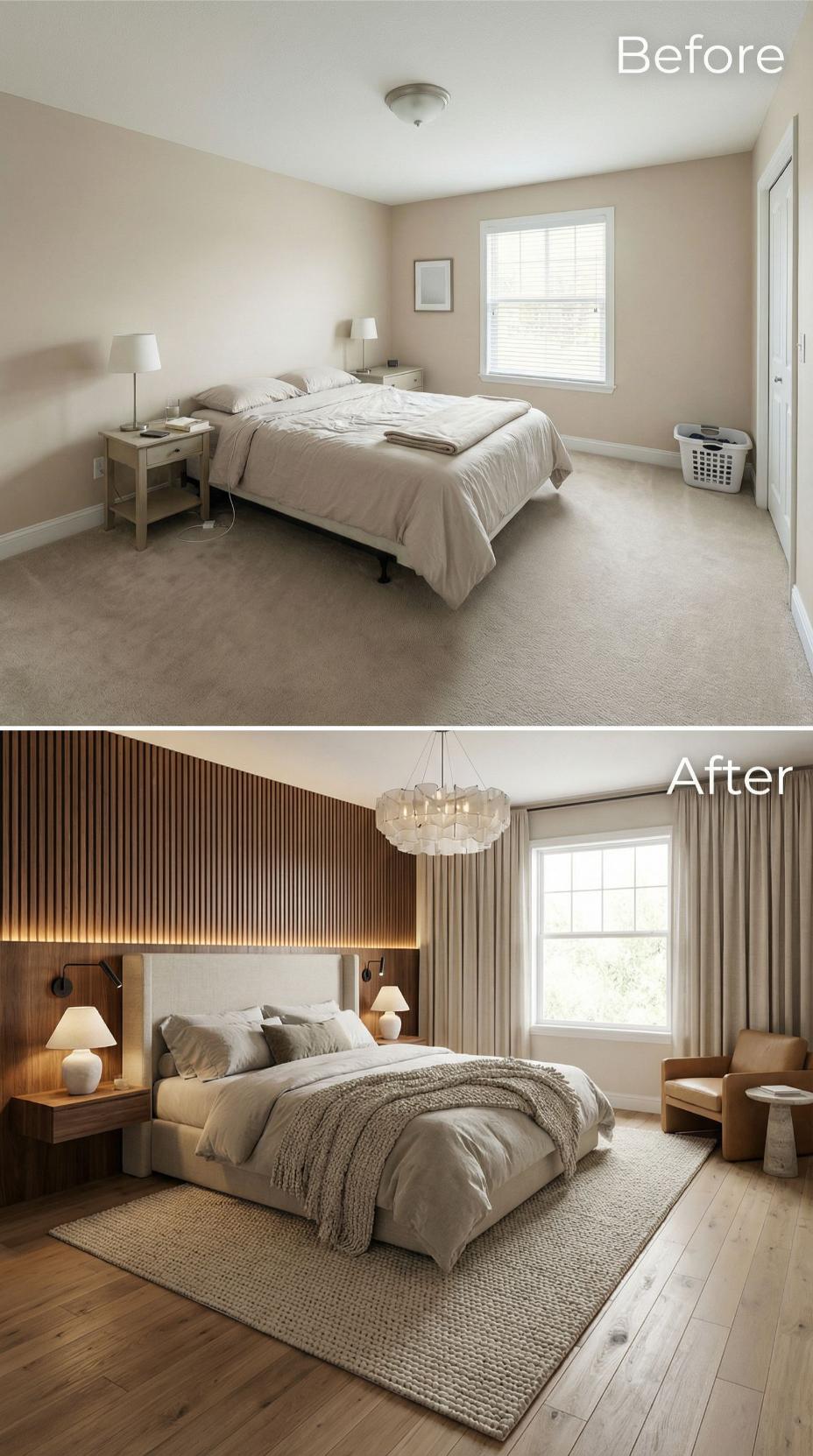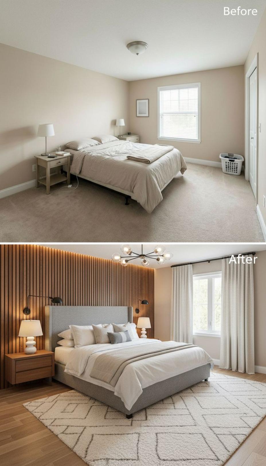 From Builder Grade Bland to Modern Sanctuary with Wood Accent Wall