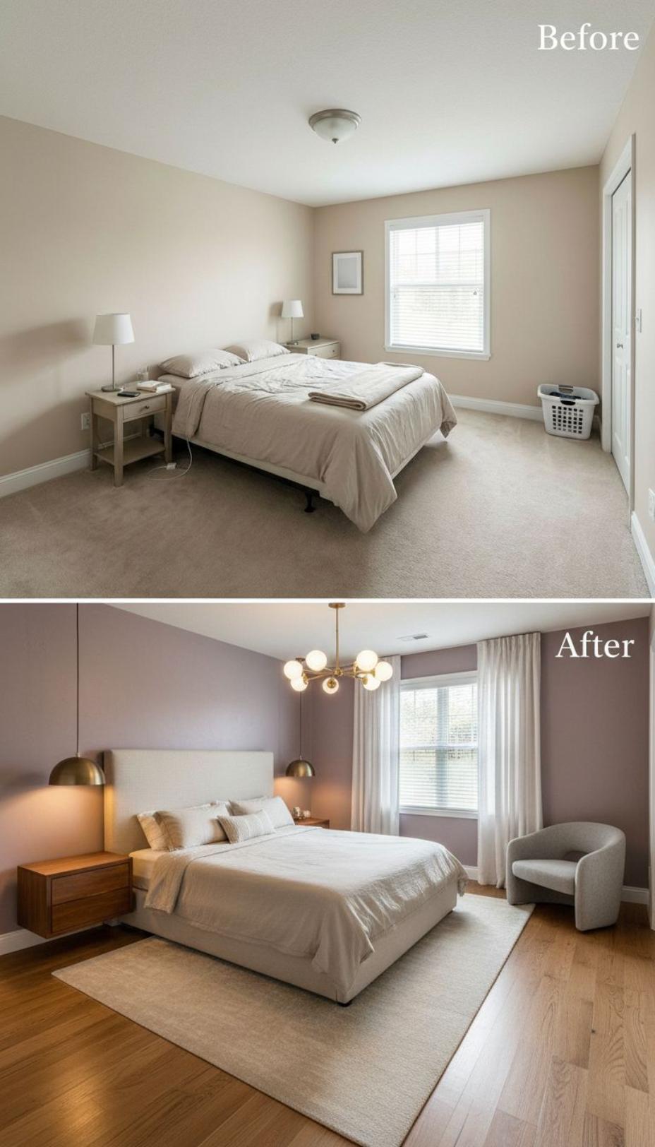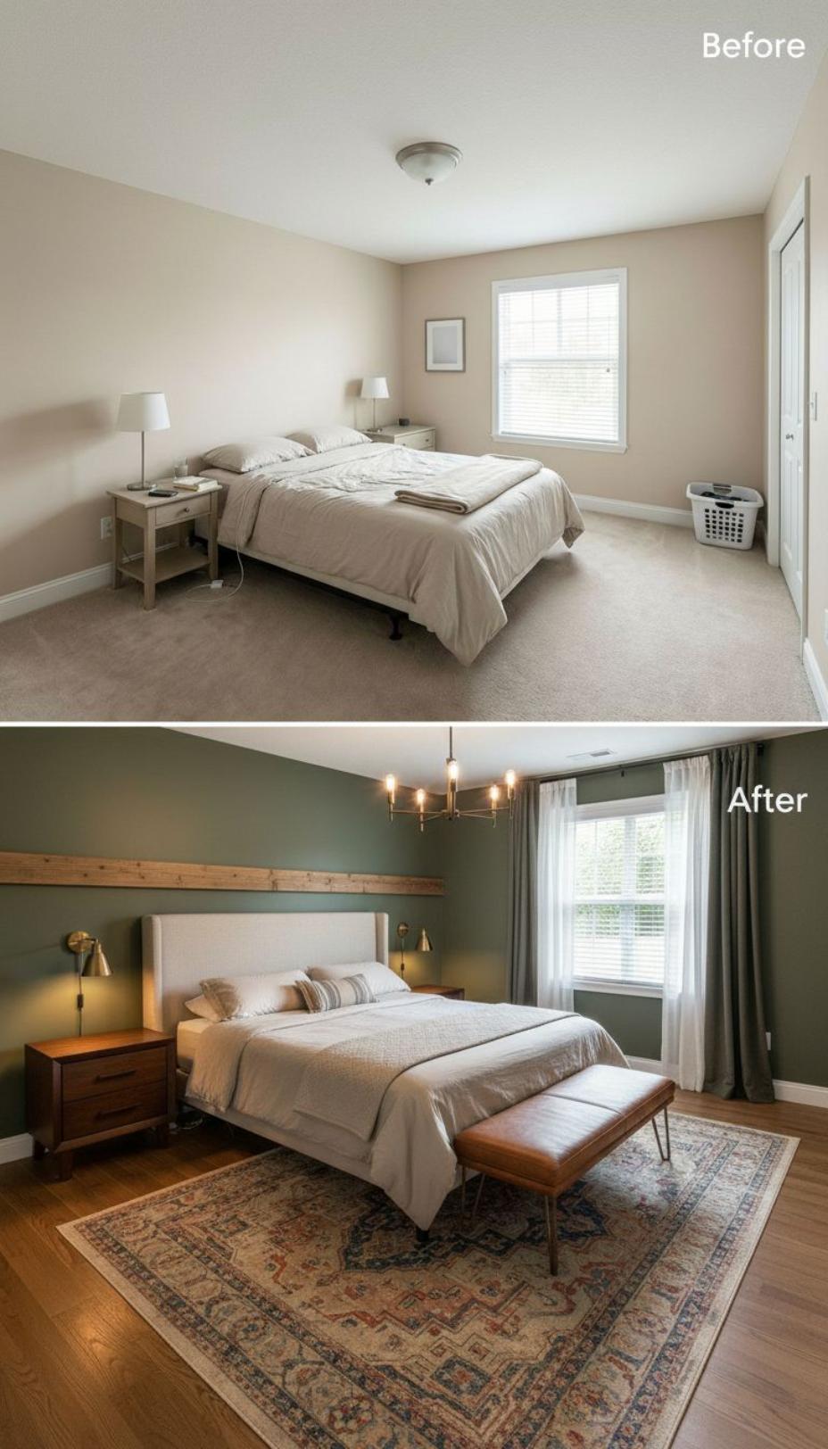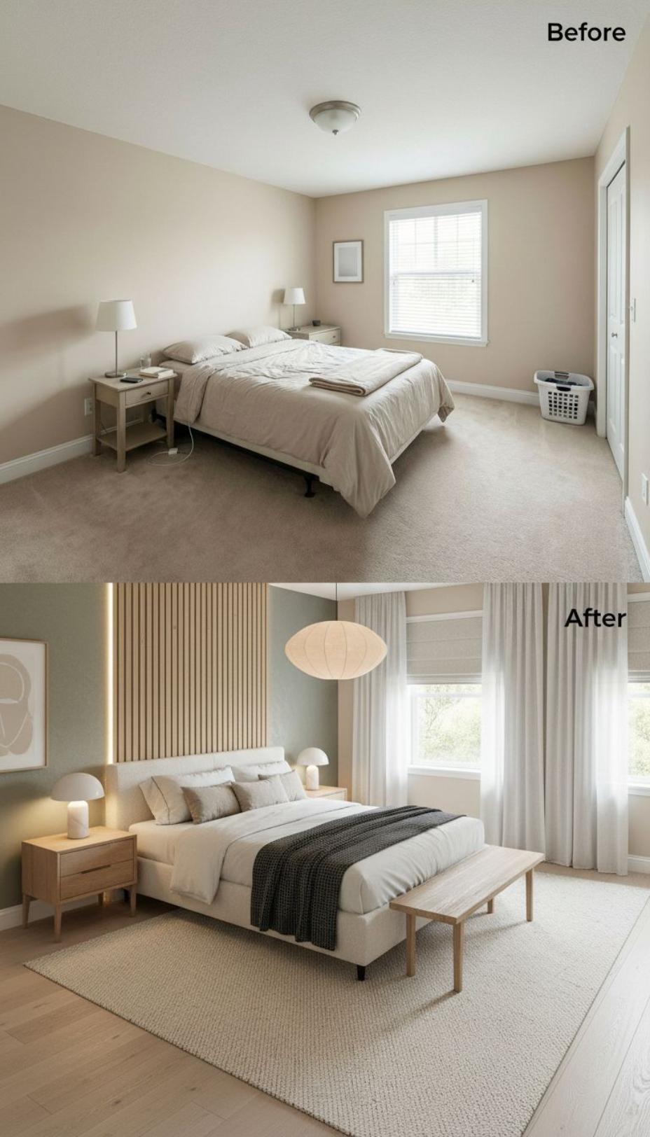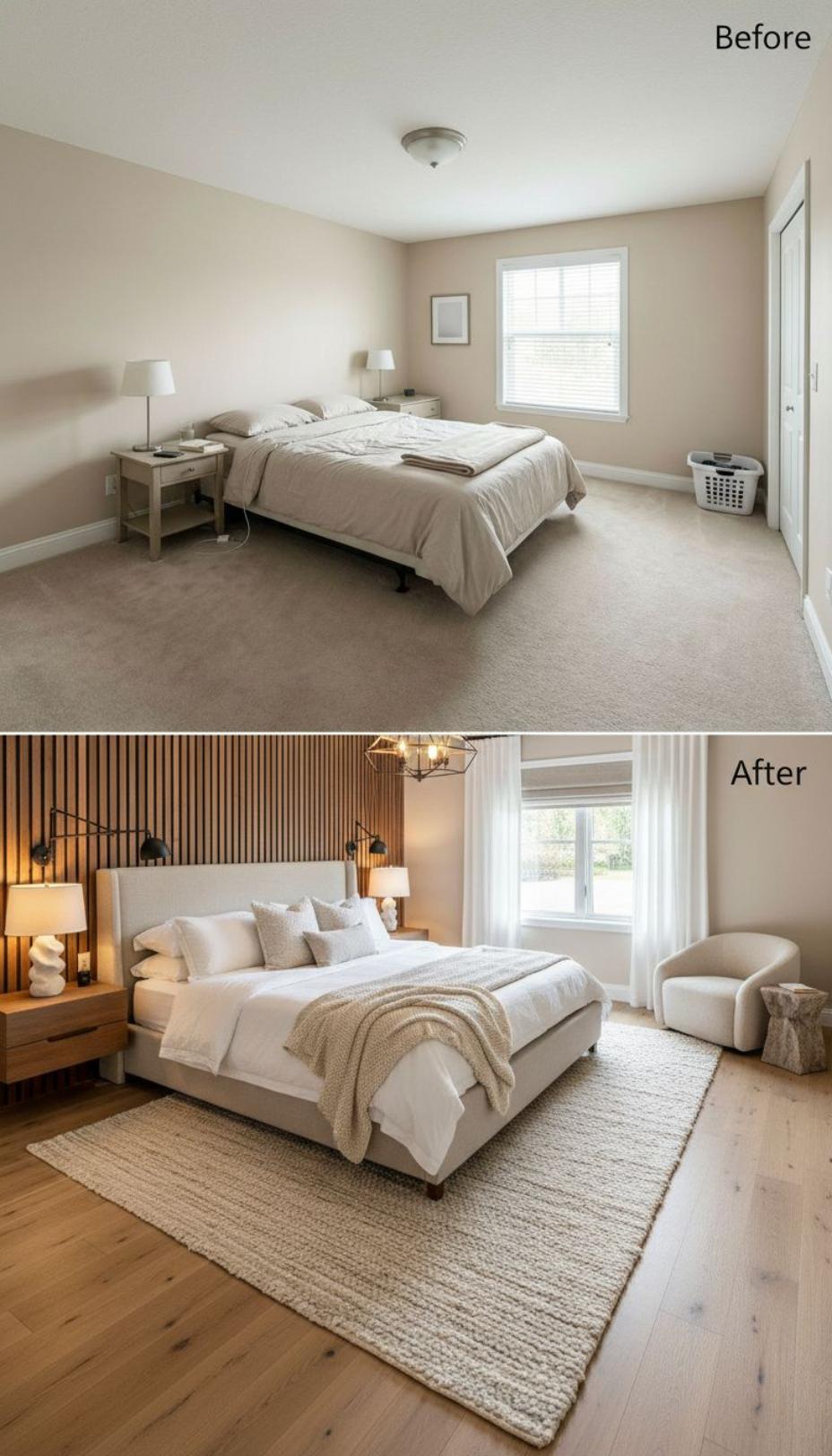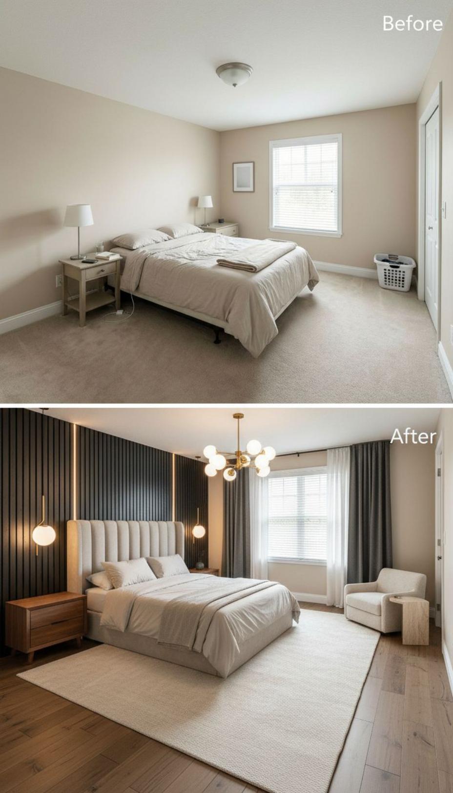 From Builder Grade Bland to Modern Sanctuary with Wood Accent Wall