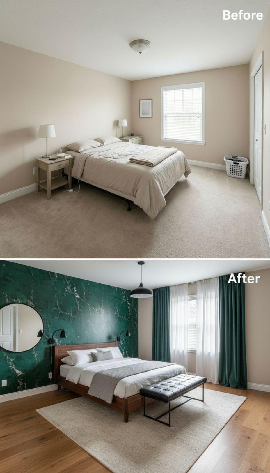 From Builder Grade Blandness to Bold Emerald Green Statement Bedroom