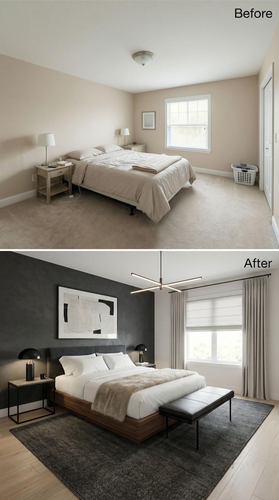 From Builder Grade Bland to Modern Sanctuary with Statement Wall