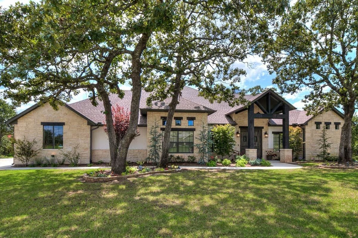 Editor’s Note: The floor plan reveals a thoughtful separation between public and private zones, with the master suite occupying the entire right wing while secondary bedrooms cluster on the left side sharing the Jack and Jill bathroom configuration. The covered porch at the front entry and expansive covered patio at the rear create seamless indoor-outdoor transitions typical of Texas Hill Country living.